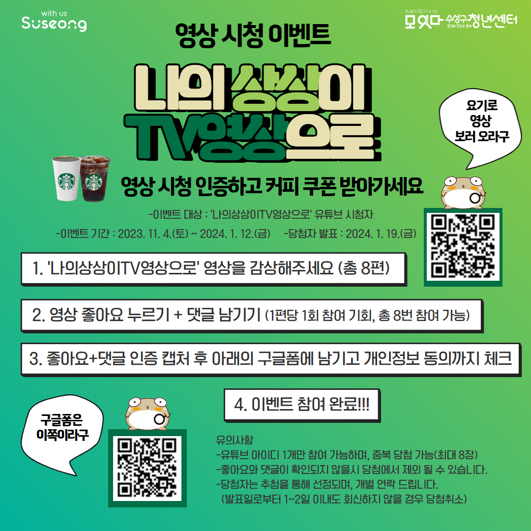 ' 나의 상상이 TV영상으로 ' 영상 시청 이벤트작성자 : 수성구청년센터 작성일 : 23-11-04