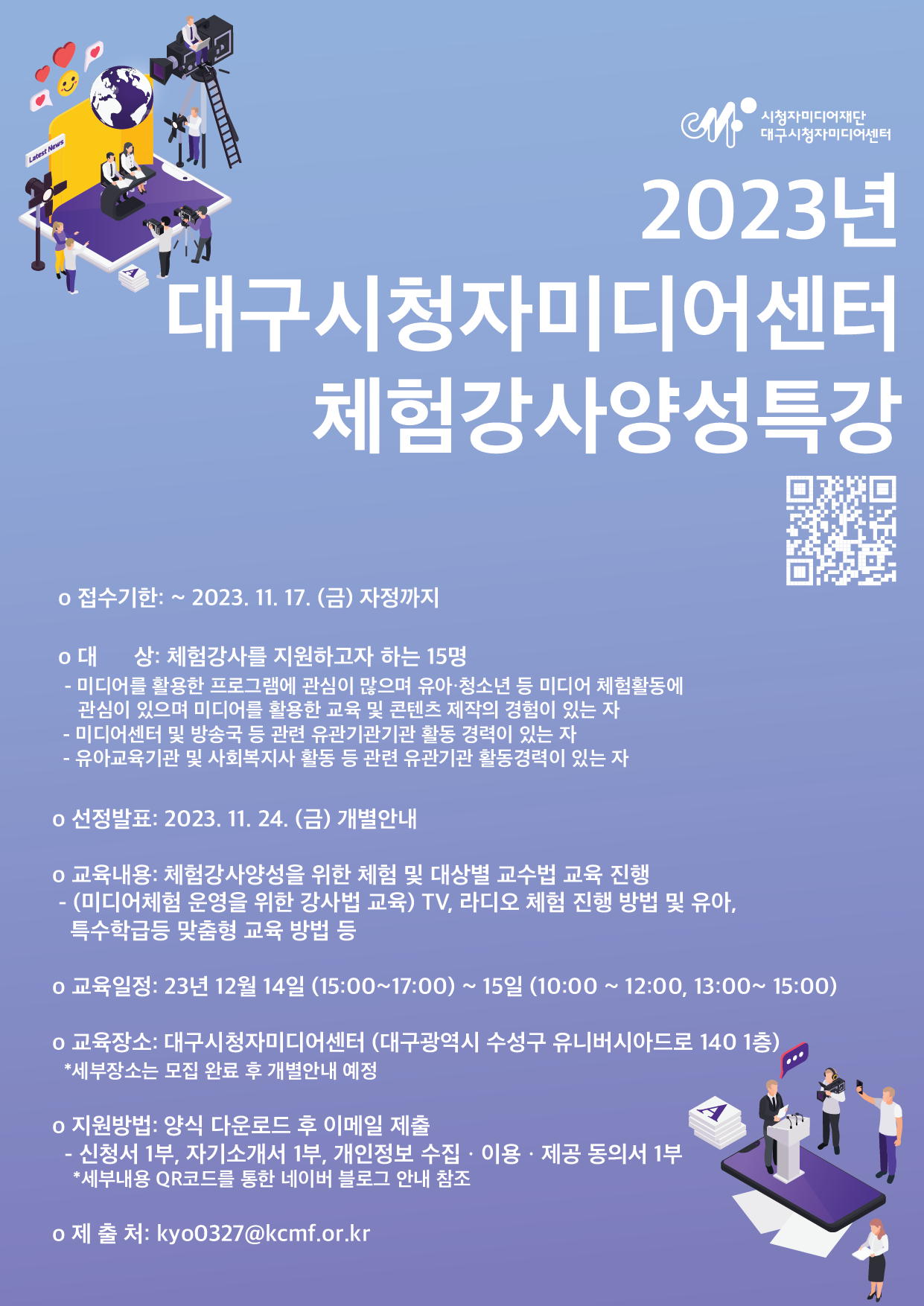 2023년 대구시청자미디어센터 체험강사 양성특강 모집작성자 : 김겸재 작성일 : 23-11-09