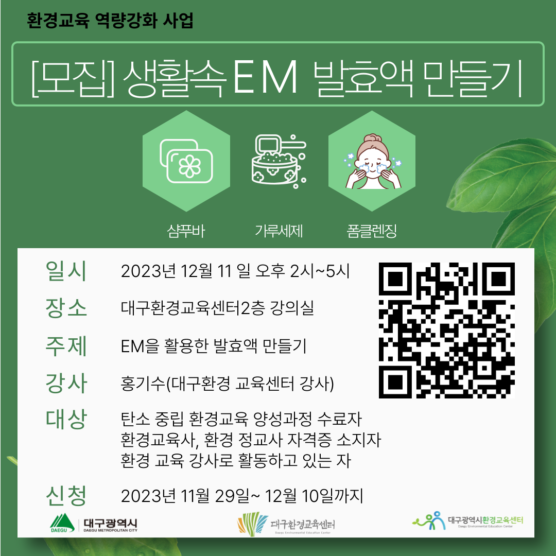 생활속 EM발효액 만들기 참가자 모집작성자 : 임호영 작성일 : 23-12-01
