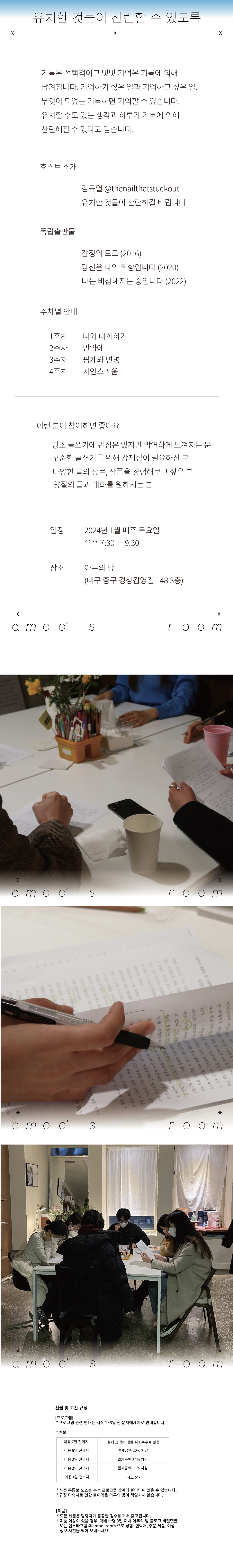 신청 : 아무의 방 홈페이지 (www.amoosroom.com)