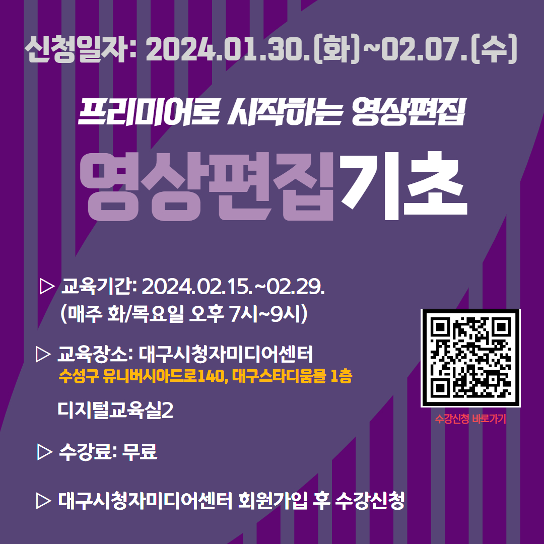 수성영상미디어센터, 대구영상미디어센터 등 영상제작/편집 강의