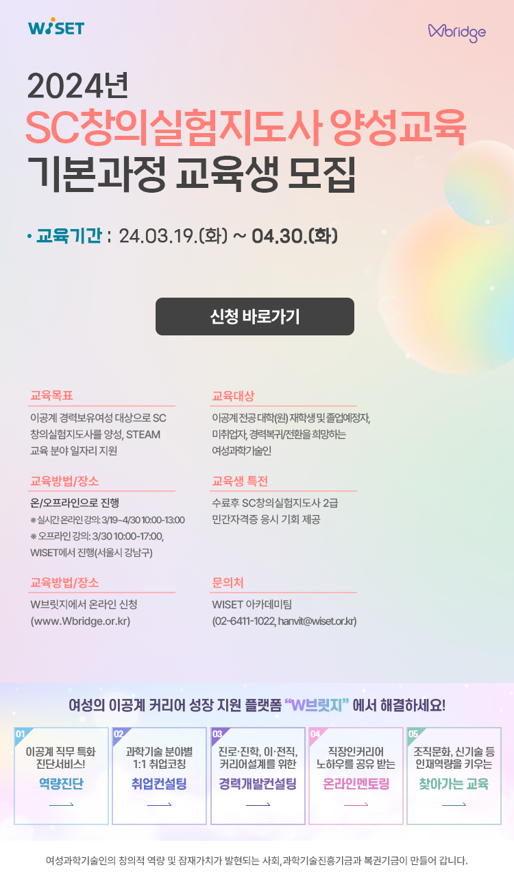 2024년 SC창의실험지도사 양성교육 교육생 모집작성자 : 이한빛 작성일 : 24-02-13