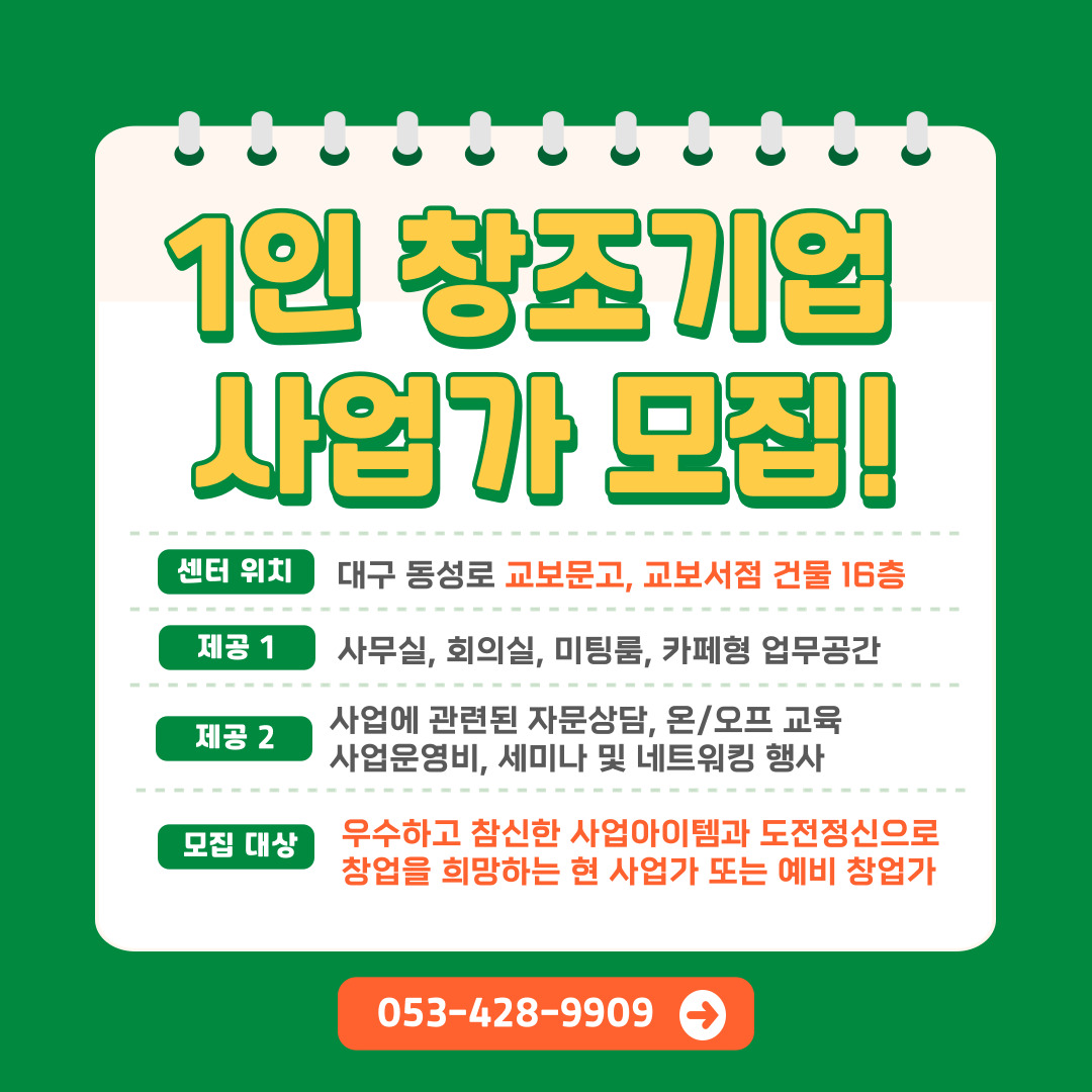 [ 사업지원금 O / 사무실 제공 O ] 대구 창조기업 지원센터작성자 : 서주연 작성일 : 24-02-14