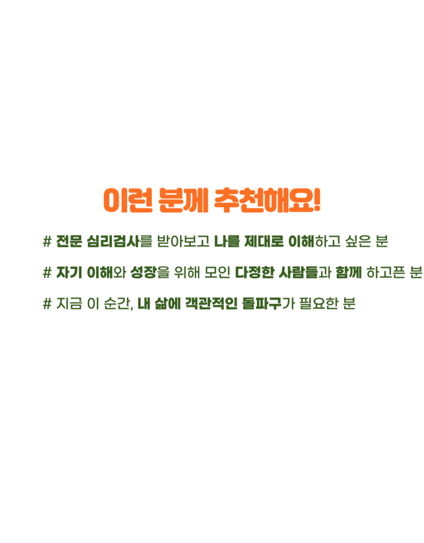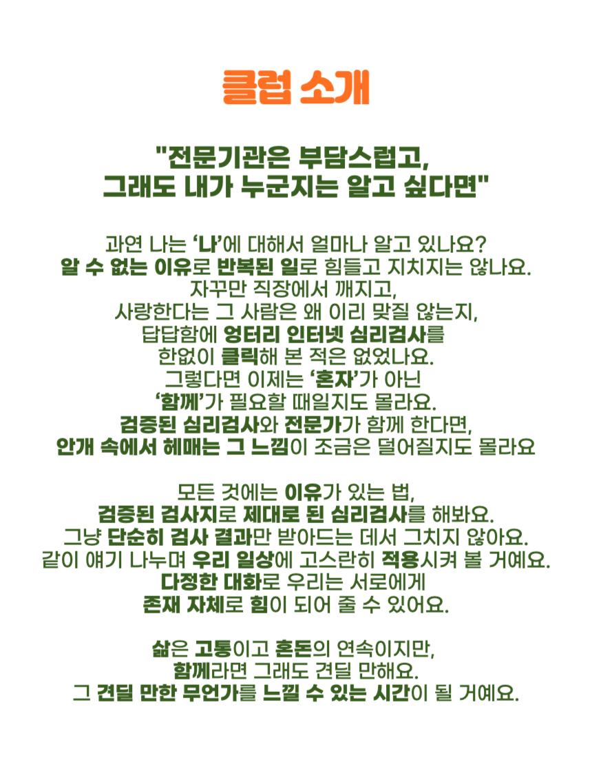 📌심리검사지 비용 : 1만 5천원 (파트너가 별도 연락드립니다)