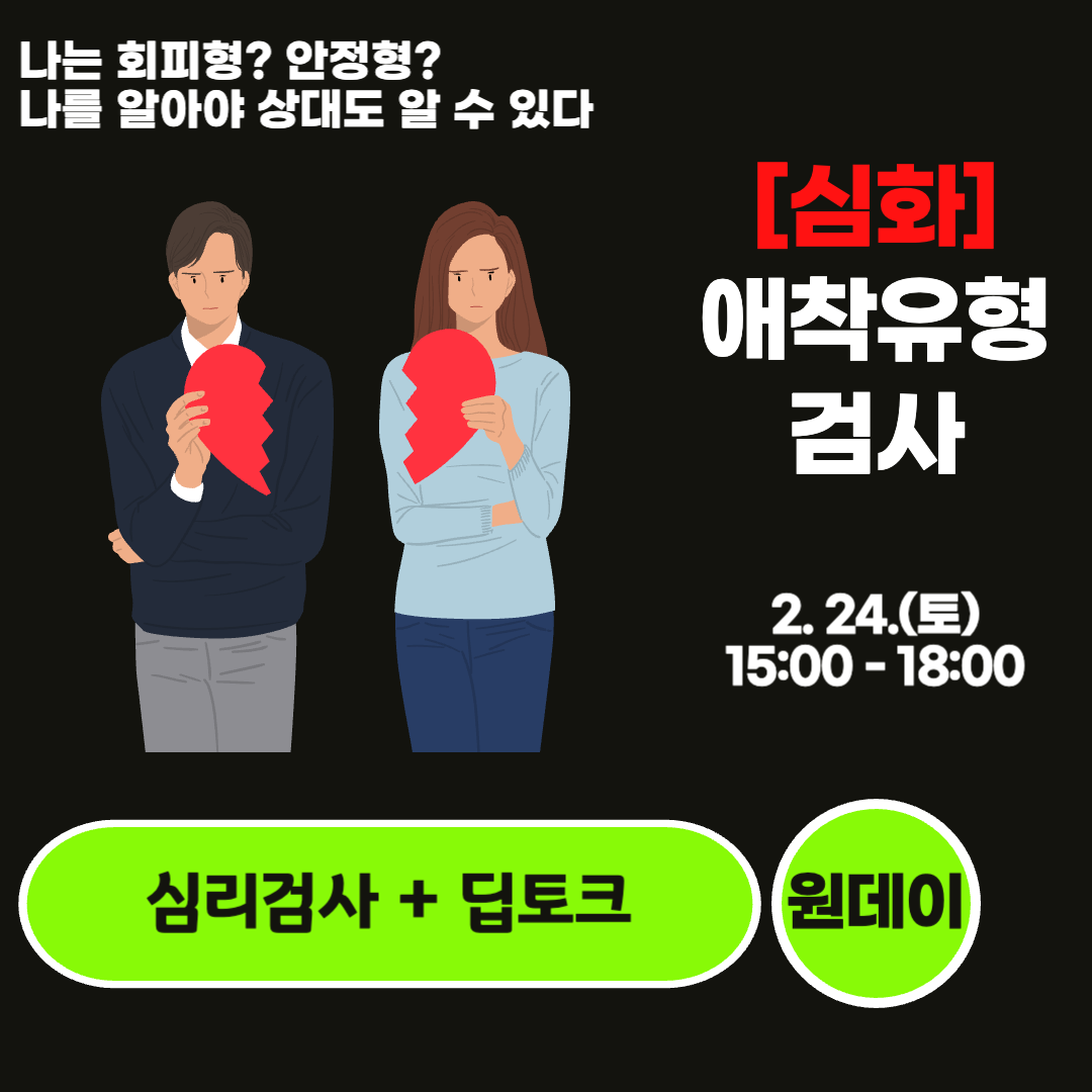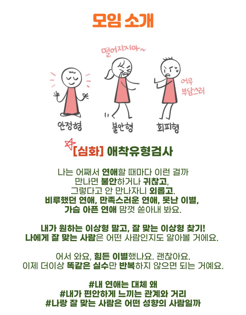 📌나를위함 애착유형검사를 수료하신 분들은 심화 과정에서는 심리검사지 비용이 별도로 발생하지 않습니다.(모임시 지참 필요)