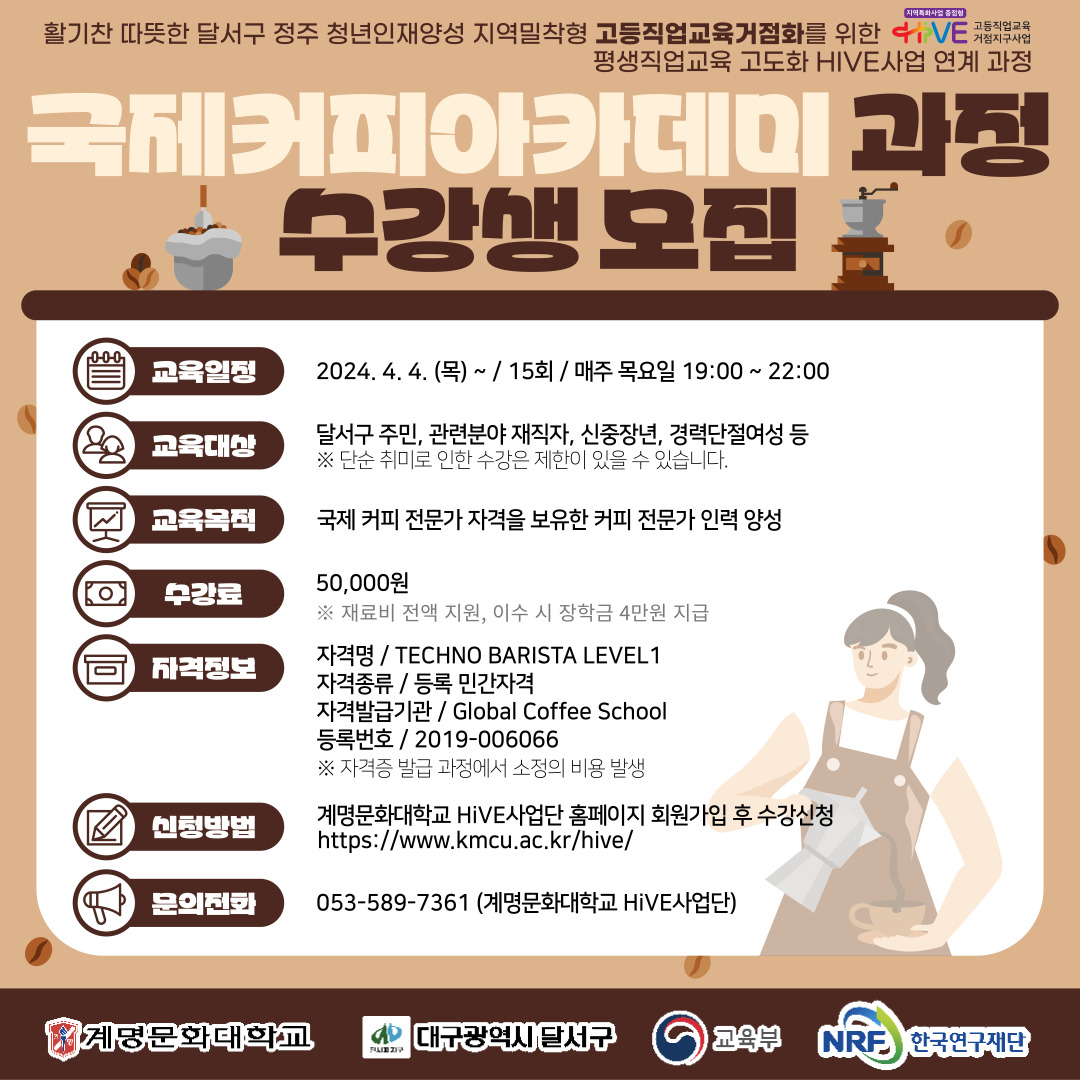 계명문화대학교 HiVE사업단에서 <국제커피아카데미>과정 수강생을 모집합니다!