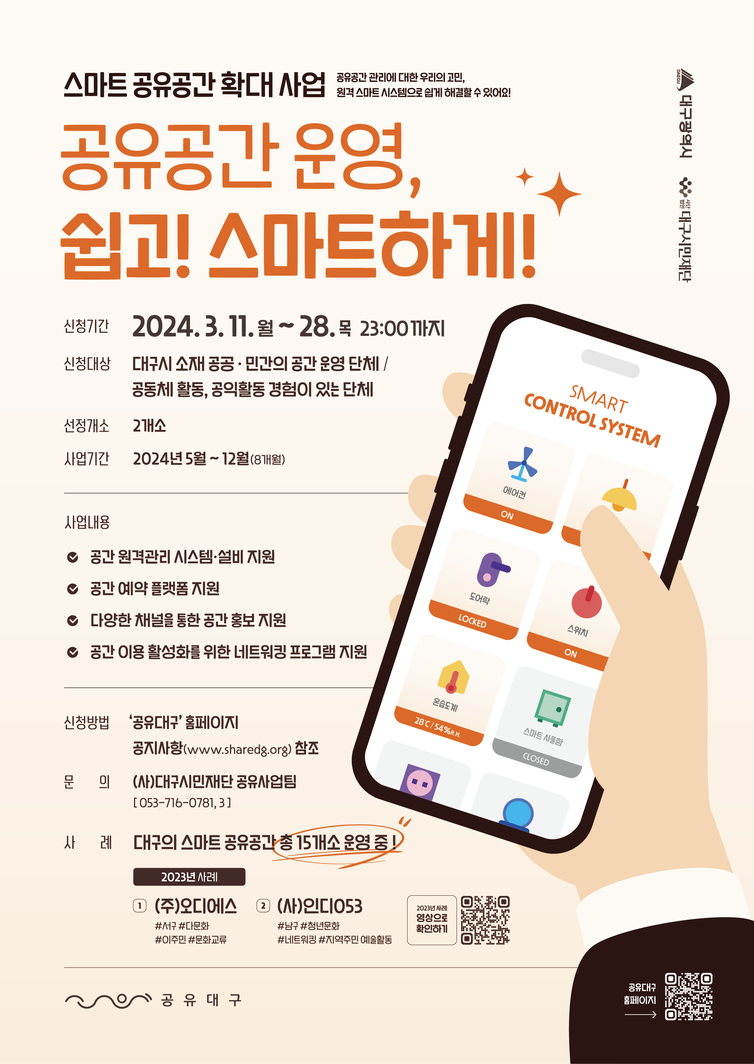 [공모] 2024 스마트 공유공간 확대 사업 공개모집작성자 : 대구시민센터 작성일 : 24-03-22