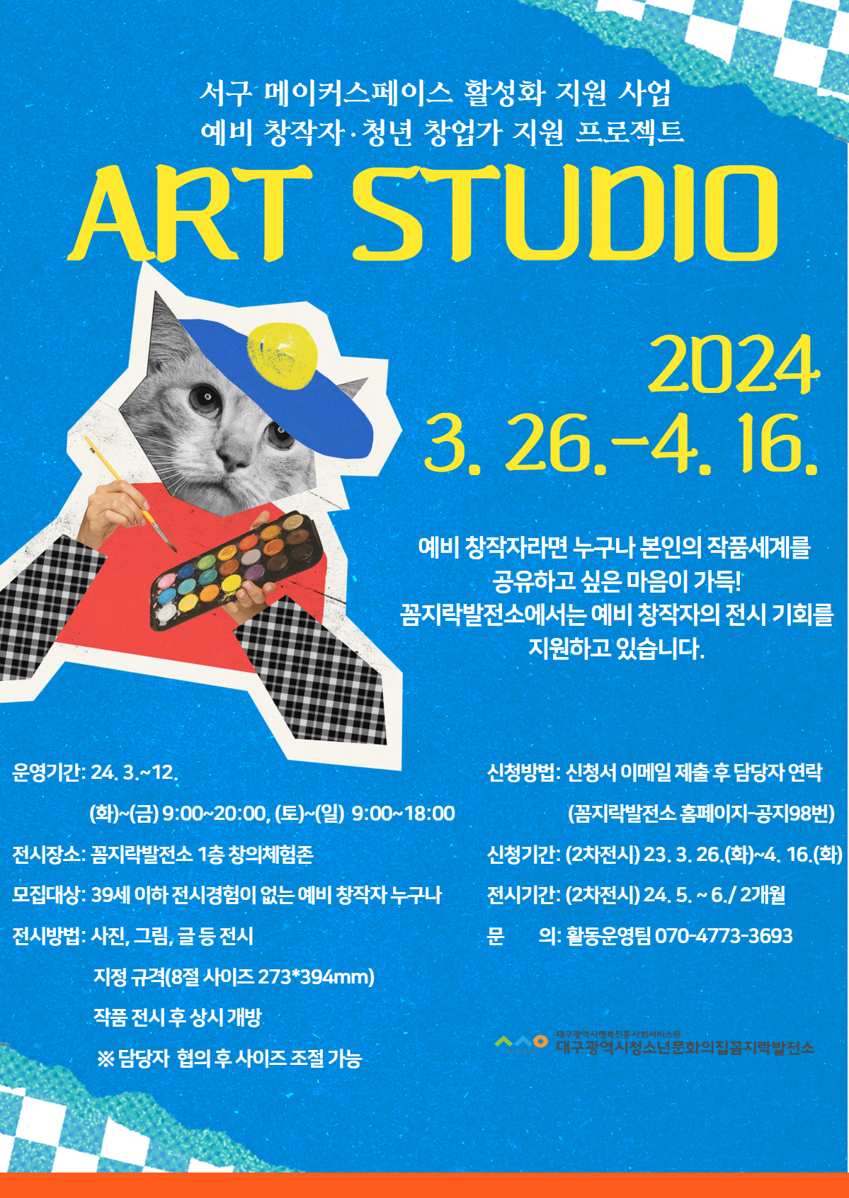 청년 창작자, 창업가 지원 프로젝트 'ART 스튜디오'작성자 : 최수빈 작성일 : 24-03-26