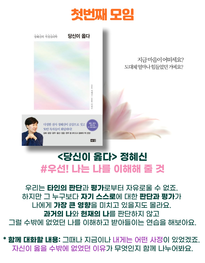 [독서] 토요일 낮, 심리 책방 (5/11 모임 시작)작성자 : 박민진 작성일 : 24-03-30