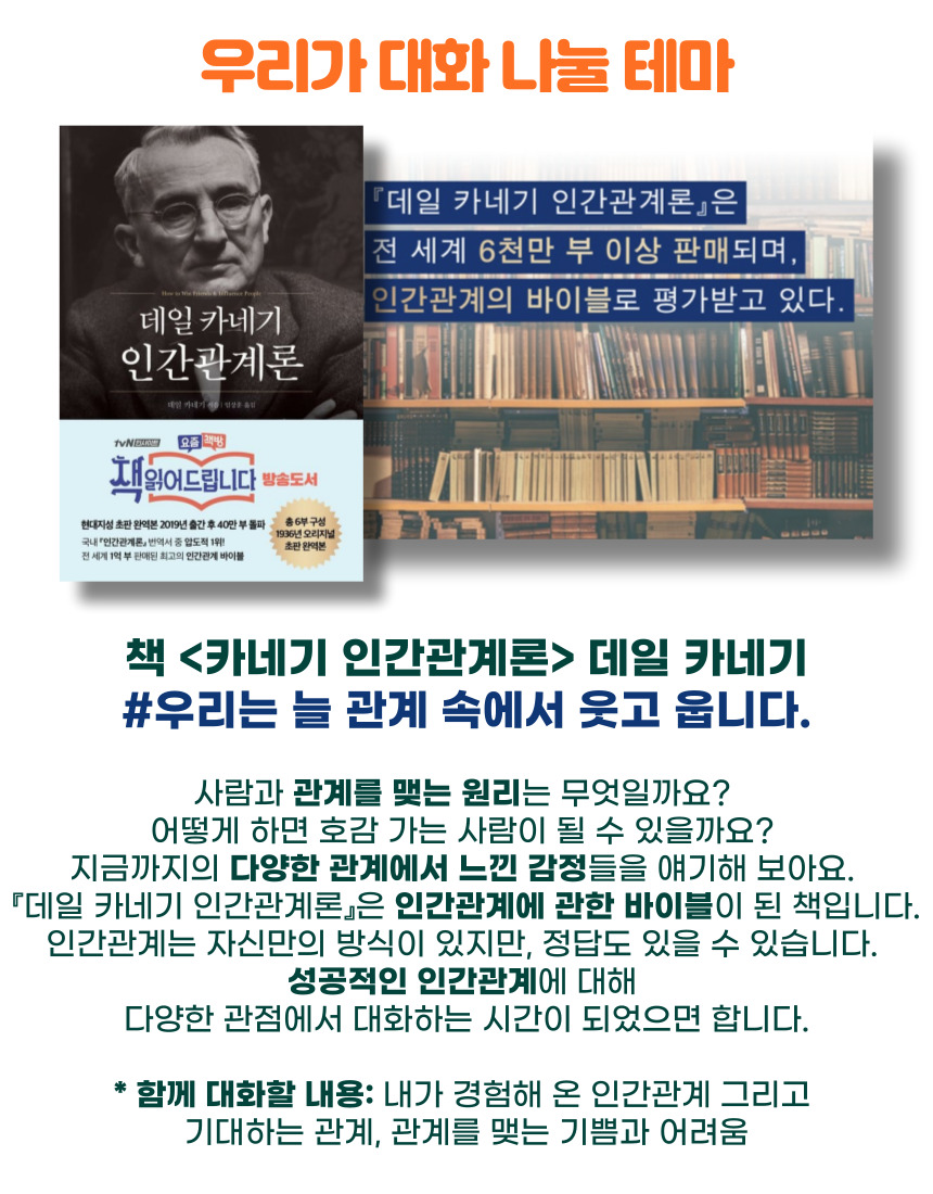 * 읽고 올 책 : 『데일 카네기 인간관계론』, 데일 카네기 저