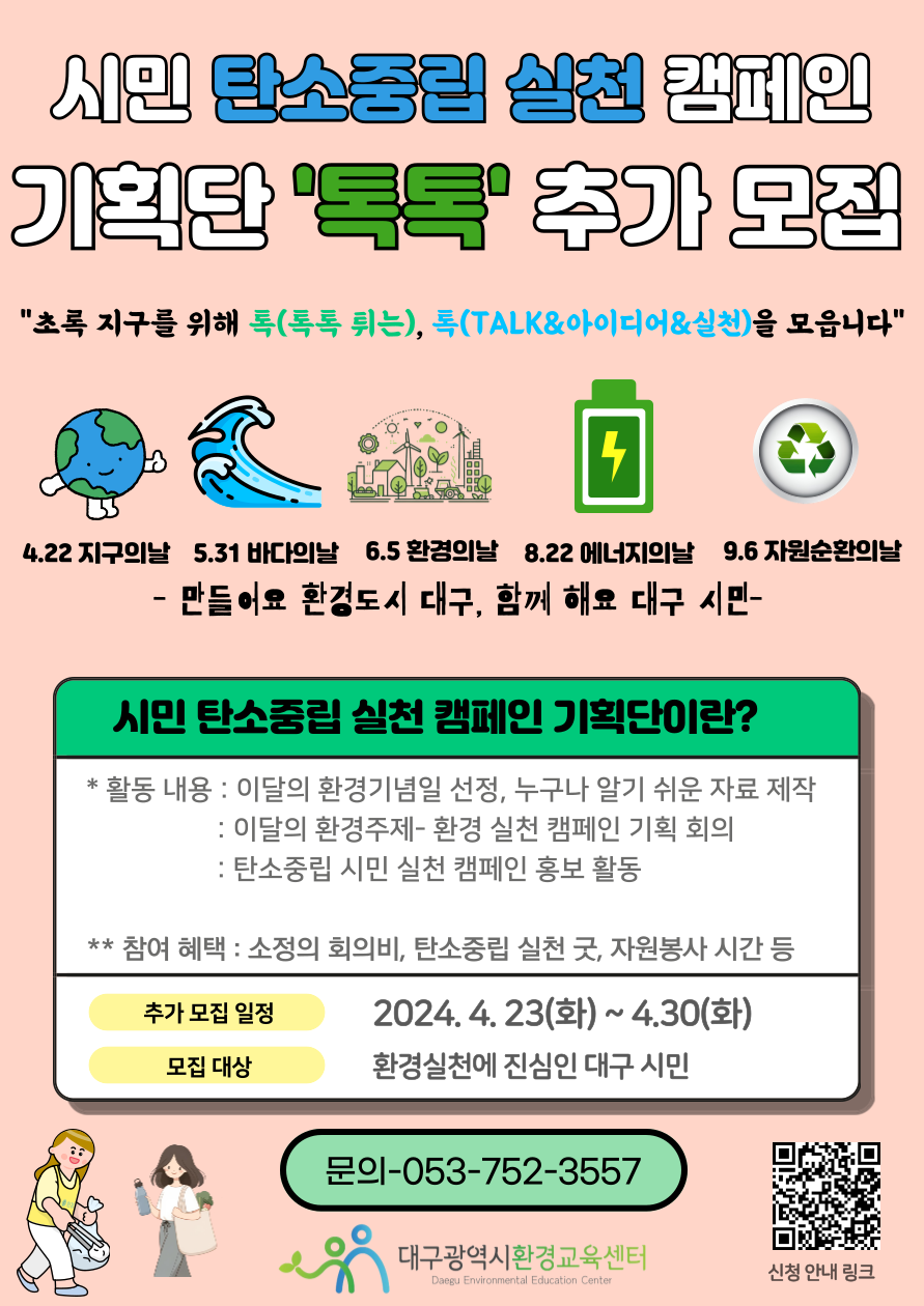 시민 탄소중립 실천 캠페인 기획단 '톡톡' 모집작성자 : 주영 작성일 : 24-04-23