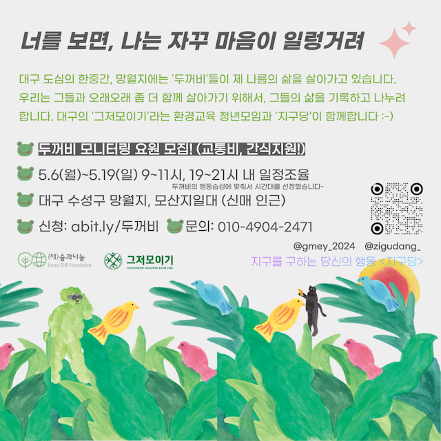 🐸두꺼비 모니터링 요원 모집!(교통비, 간식지원)🐸
