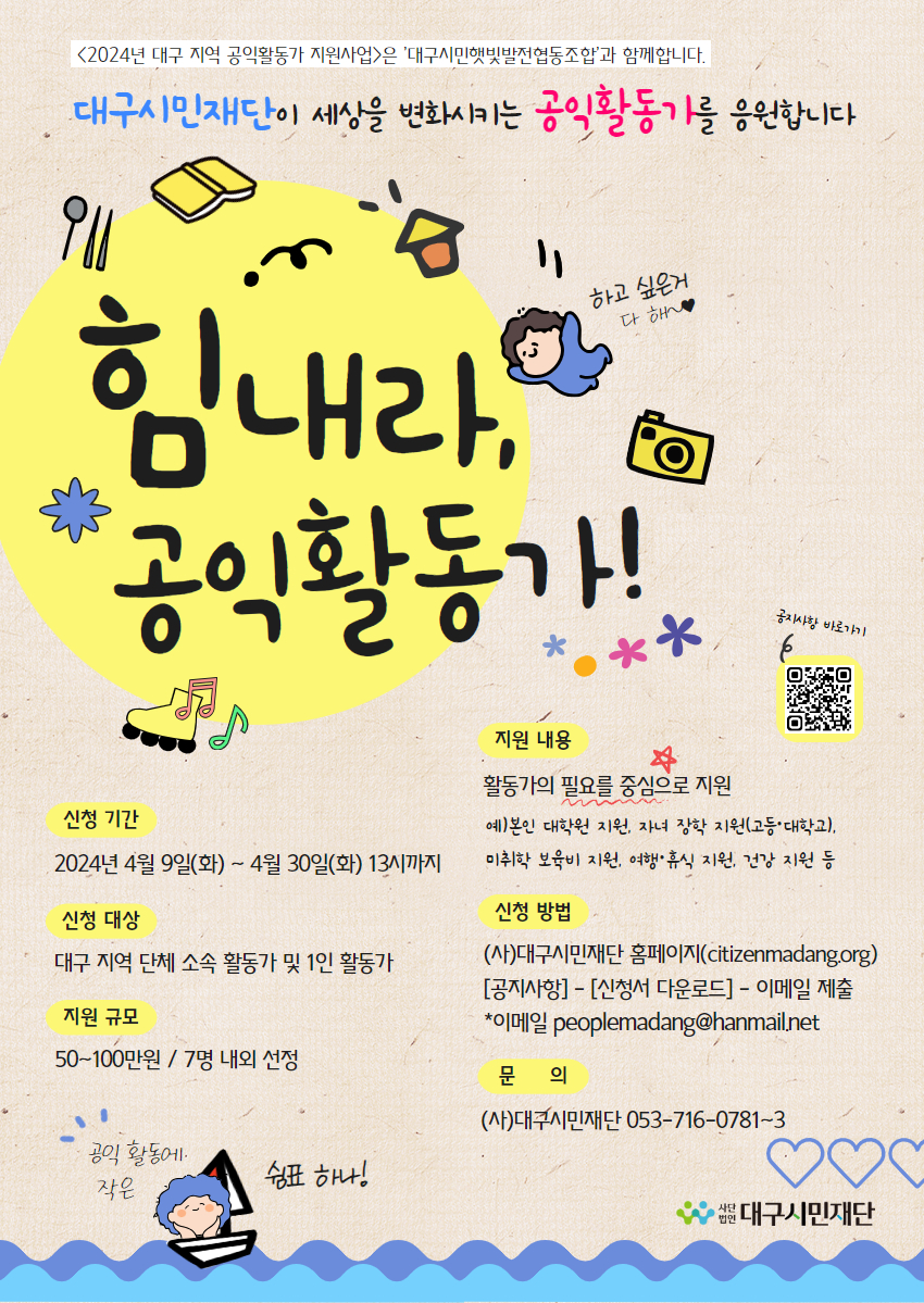 <2024년 대구 지역 공익활동가 지원사업 공모>