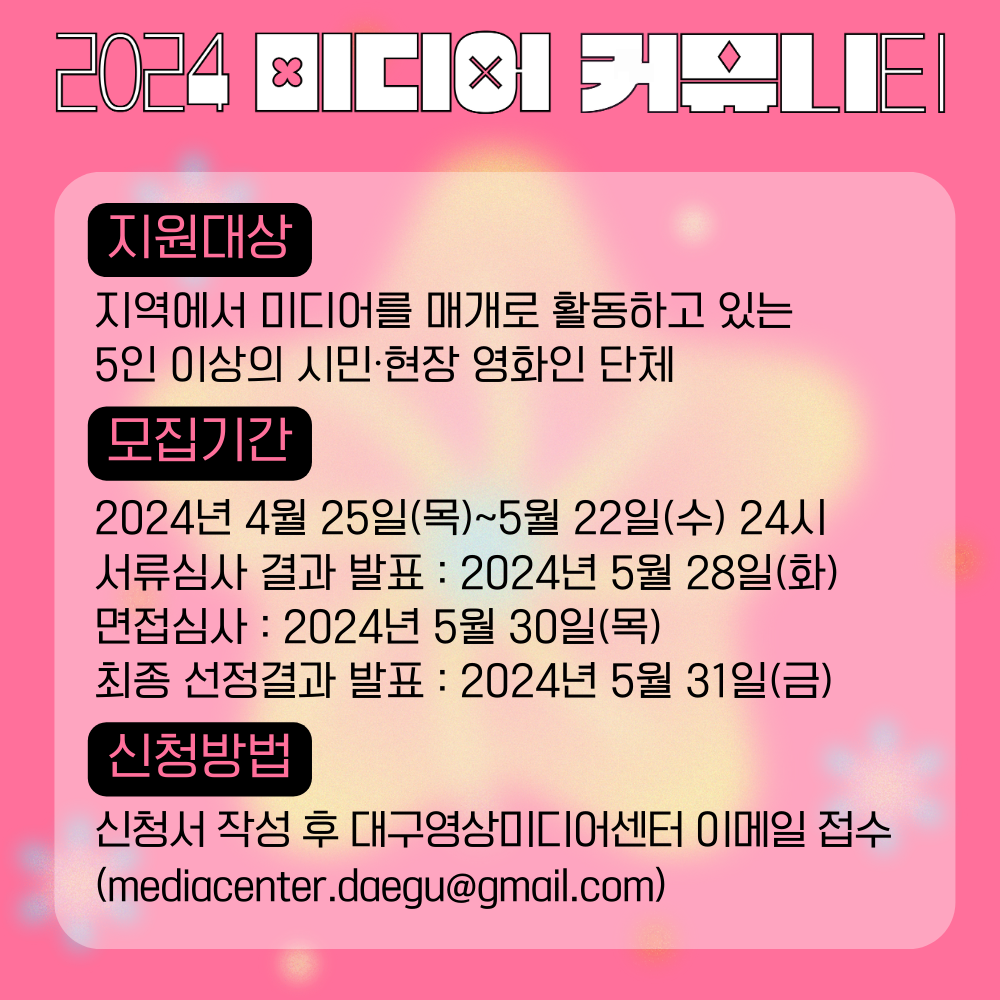 2024 미디어 커뮤니티 지원사업작성자 : 대구영상미디어센터 작성일 : 24-04-30