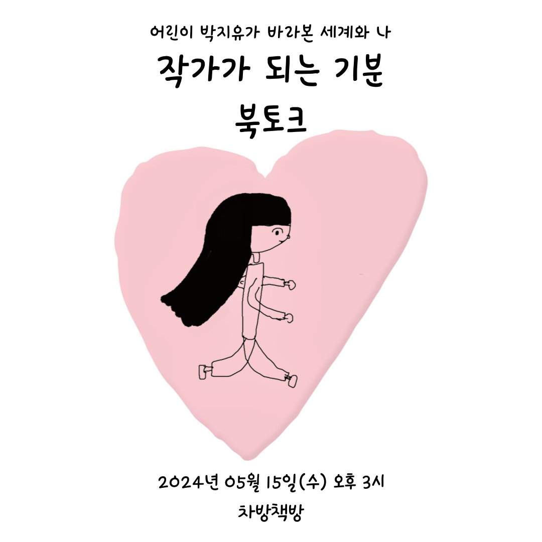 어린이 박지유가 자신의 주변과 세계를 바라본 시선을 담은 동시집 『작가가 되는 기분』 북토크가 차방책방에서 열립니다.