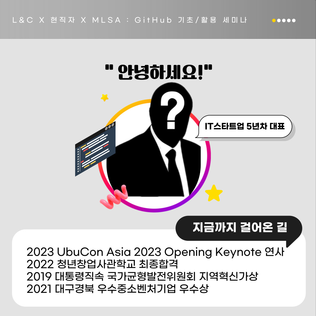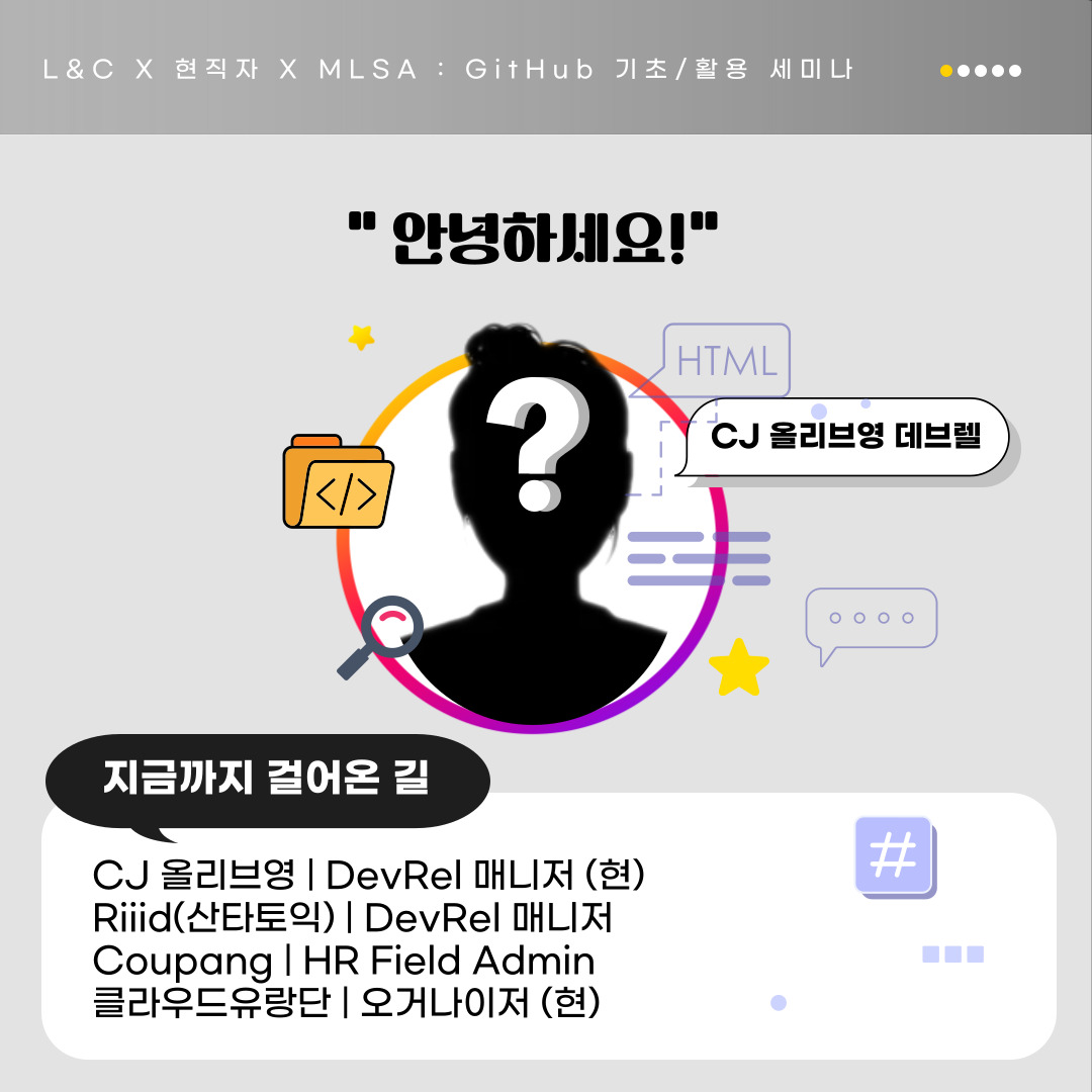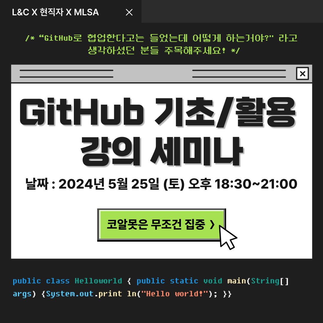 L&C에서 지난번 기초 Github 세미나에 이어, 오는 5월 25일 GitHub 기초/활용 강의 세미나를 개최하게 되었습니다.🤗