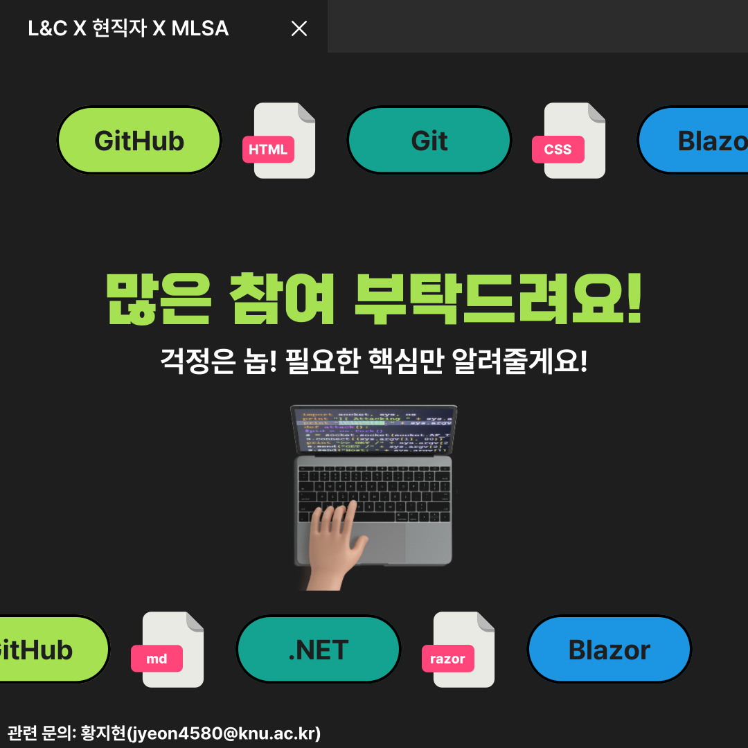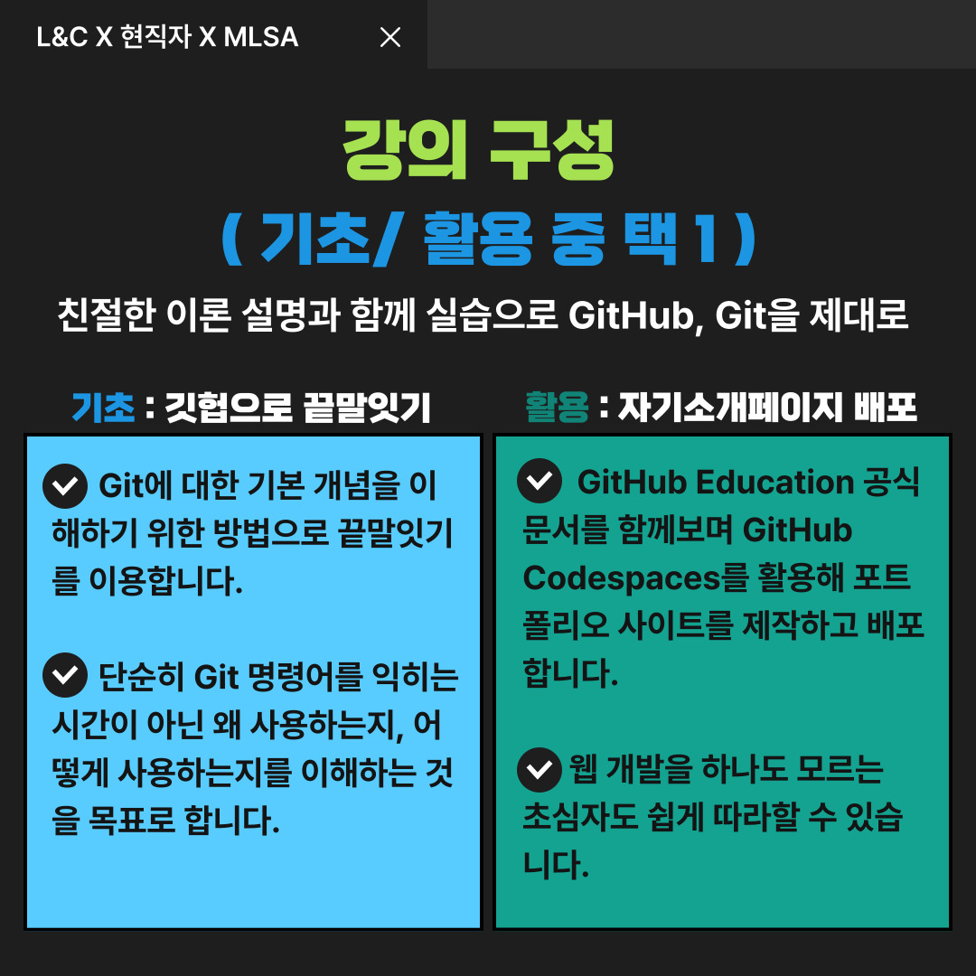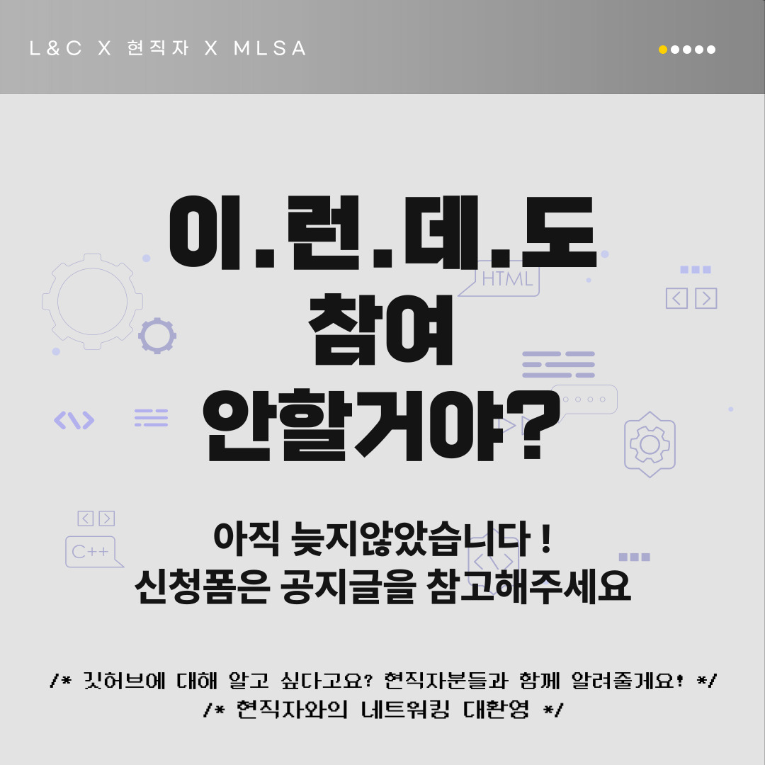 L&C에서 지난번 기초 Github 세미나에 이어, 오는 5월 25일 GitHub 기초/활용 강의 세미나를 개최하게 되었습니다.🤗
