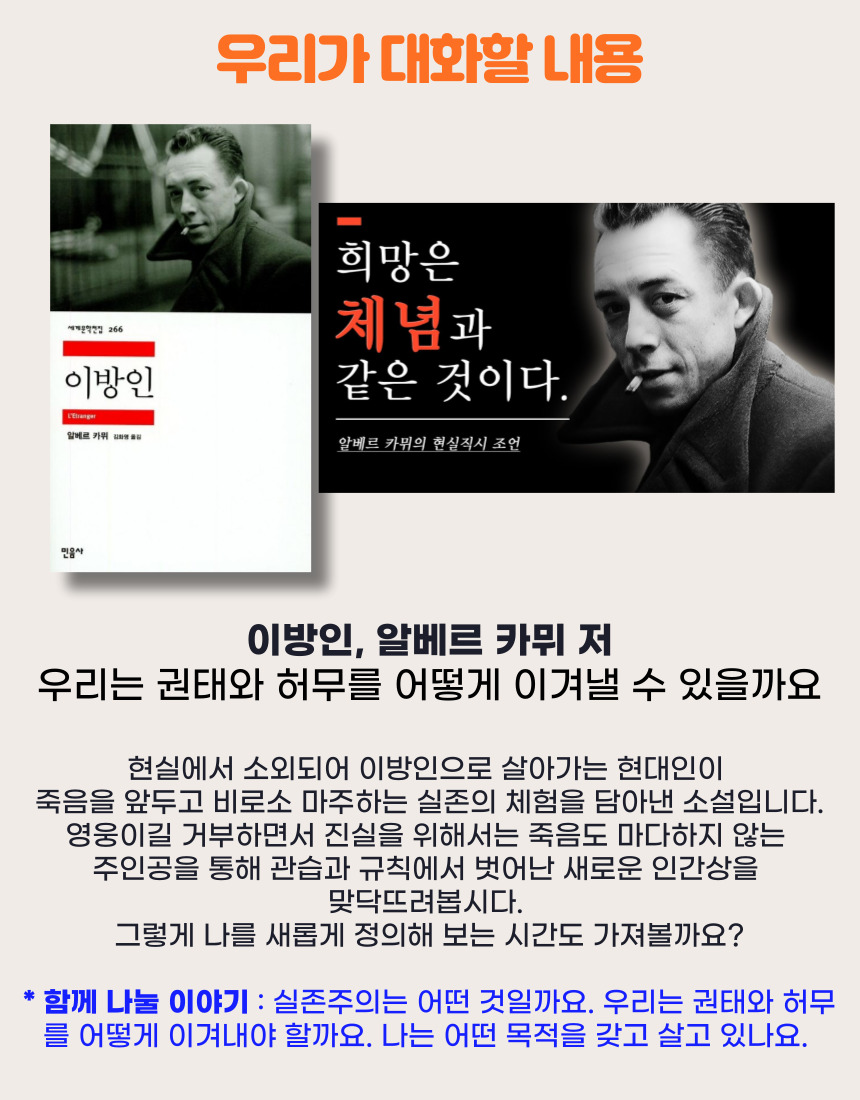 📅 우리가 읽고 올 책 : 이방인, 알베르 카뮈