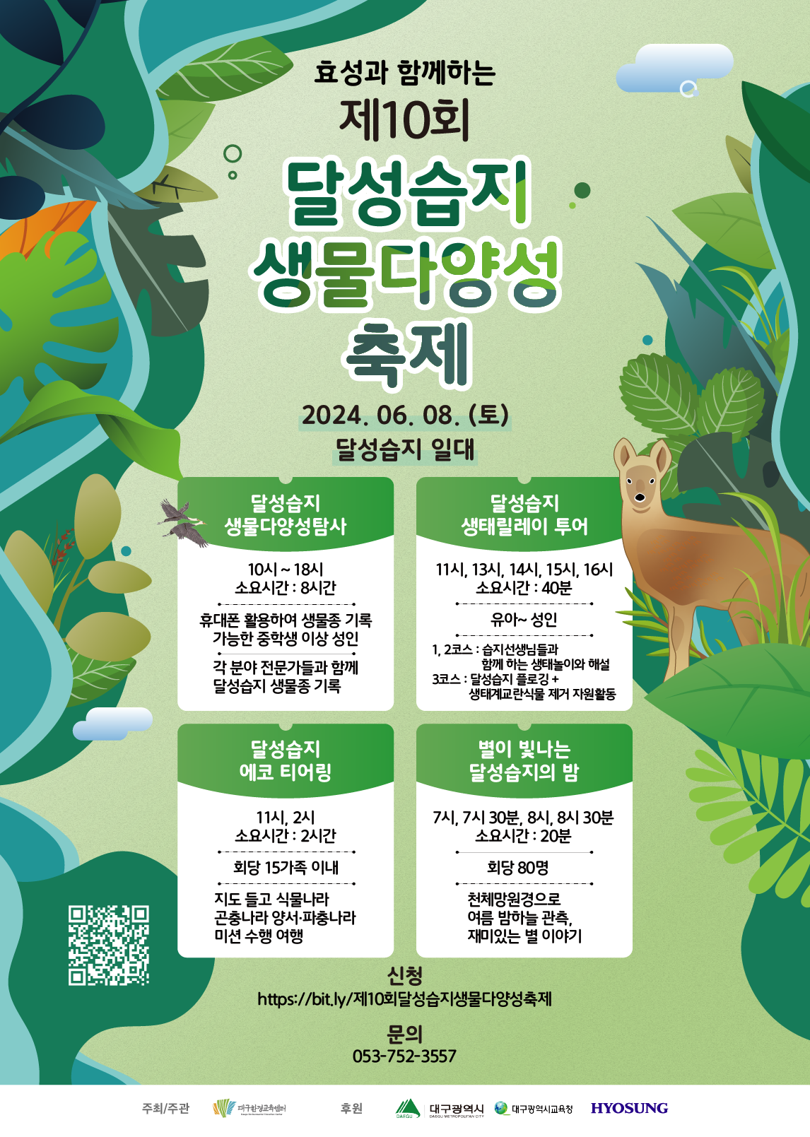 제10회 달성습지 생물다양성 축제(구. 맹꽁이축제)개최 안내작성자 : 임호영 작성일 : 24-05-20