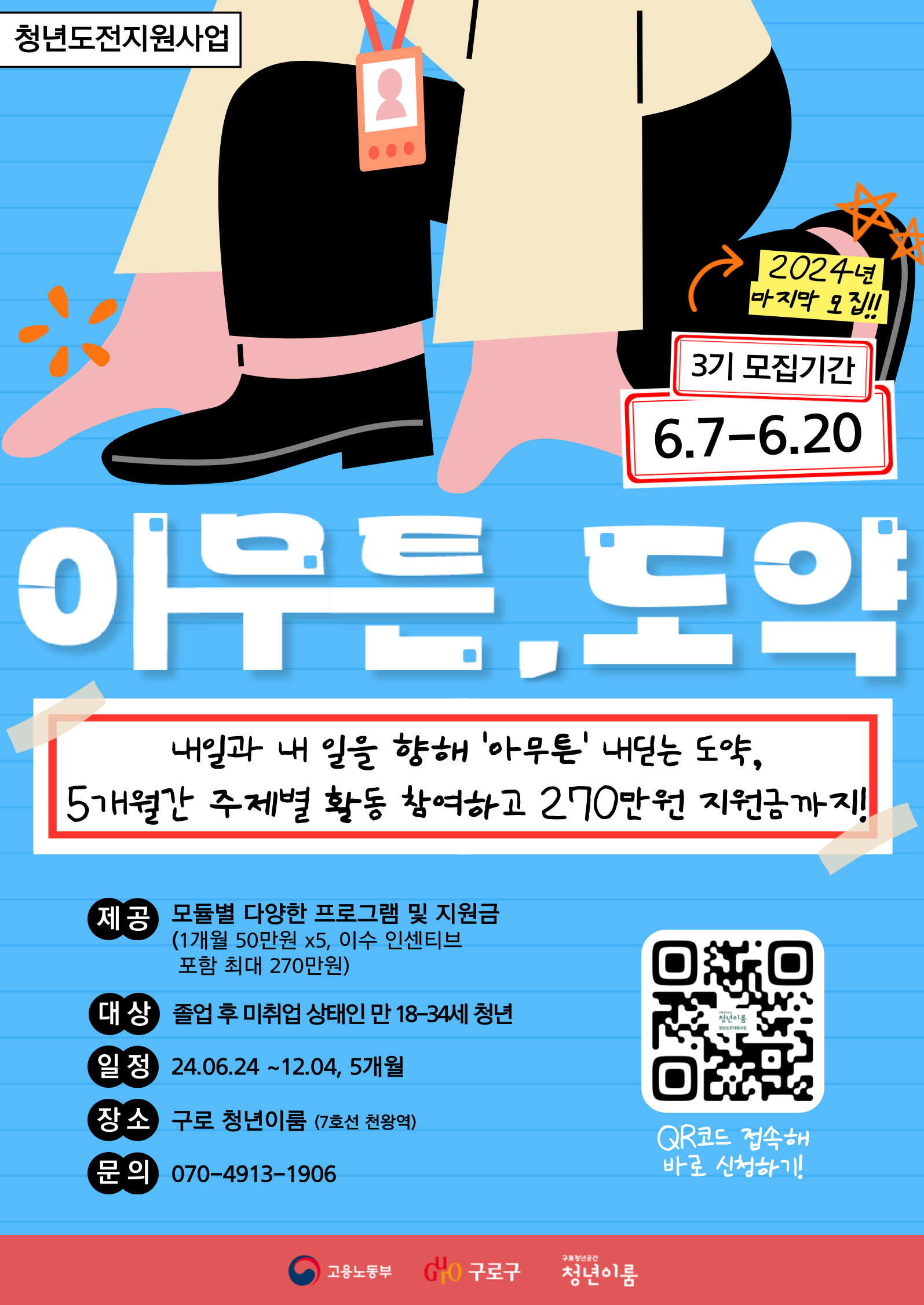 [청년도전지원사업] 2024 아무튼,도약 3기 모집 (6/7~6/20)작성자 : 청년이룸 작성일 : 24-05-28
