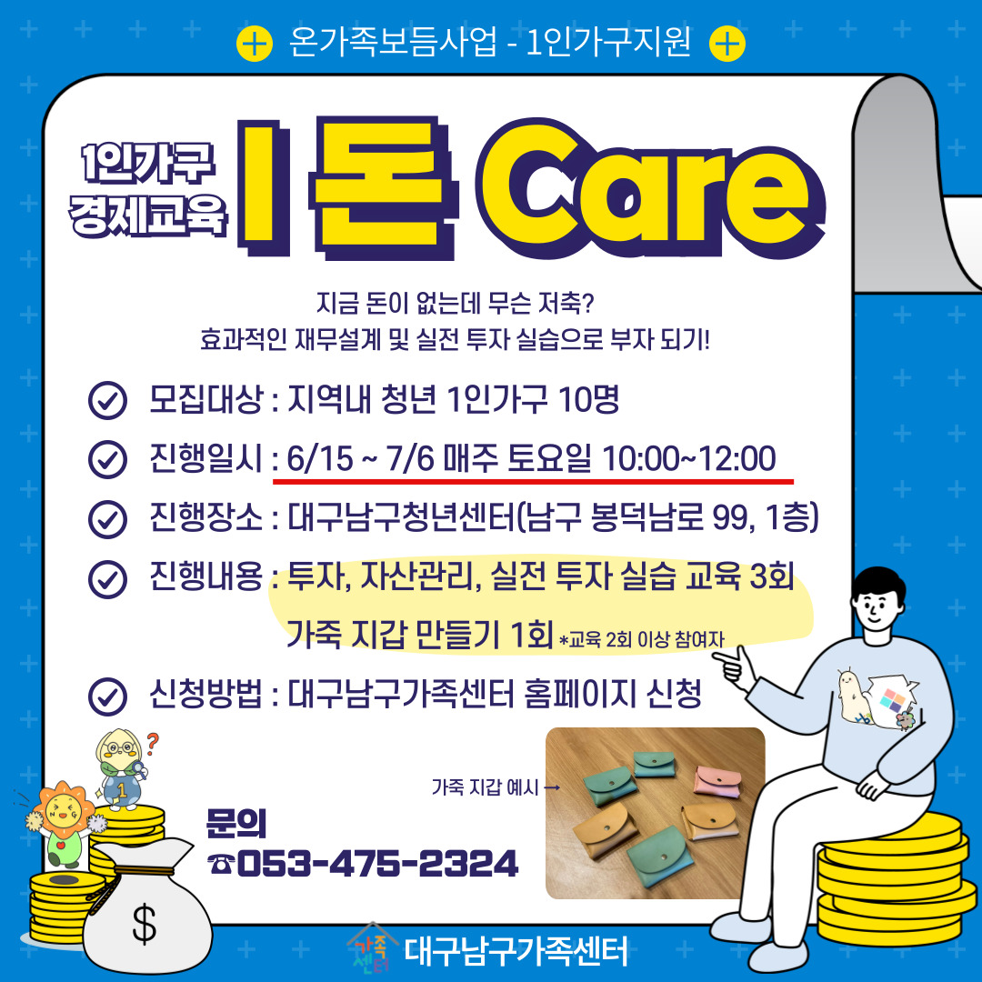 💡신청 방법 : 남구가족센터 홈페이지 "I 돈 Care" 프로그램 신청