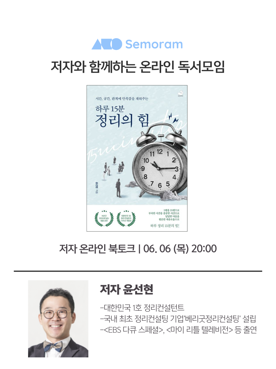 '하루 15분 정리의 힘' 저자와 함께하는 온라인 독서모임작성자 : 황필권 작성일 : 24-05-29
