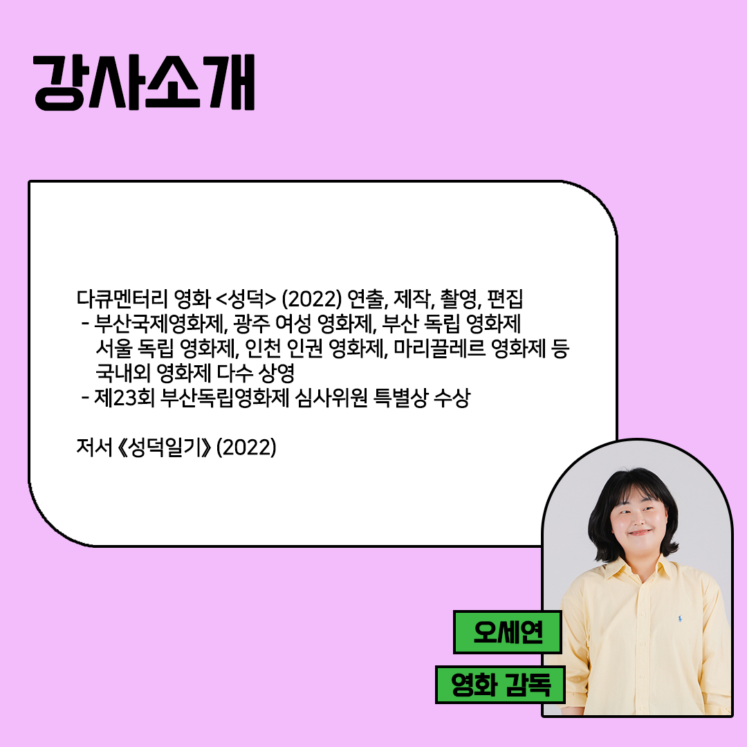 독립 다큐멘터리 제작과정 수강생 모집작성자 : 대구영상미디어센터 작성일 : 24-05-29