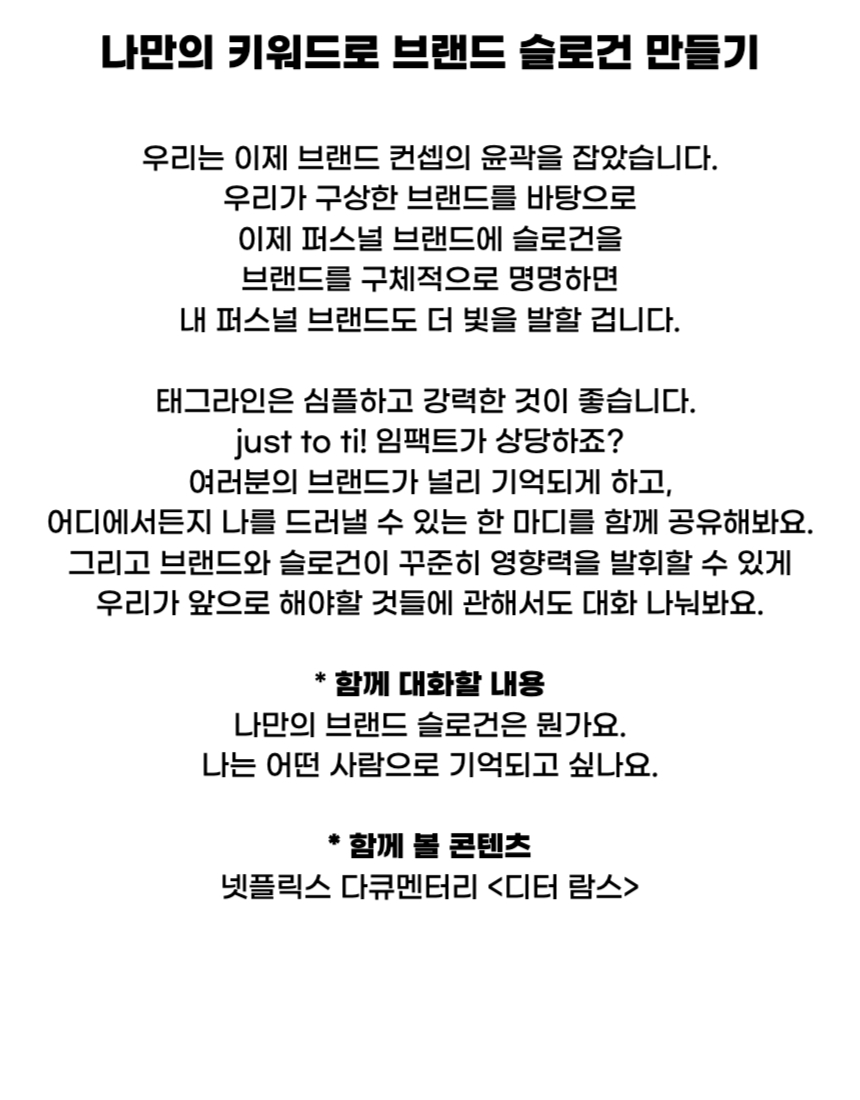 📅 6회차(10/6) 나만의 키워드로 브랜드 슬로건 만들기