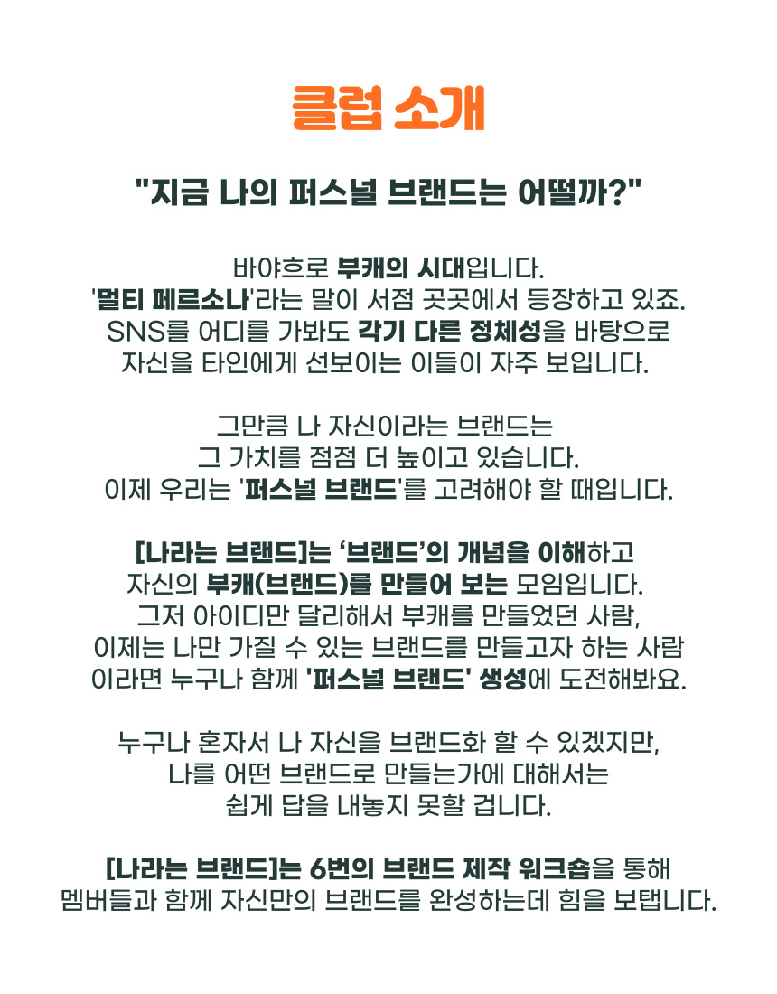 [나라는 브랜드]는 6번의 브랜드 제작 워크숍을 통해