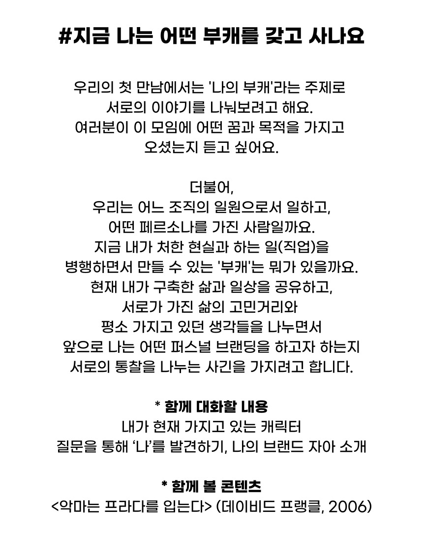 자신의 부캐(브랜드)를 만들어 보는 모임입니다.