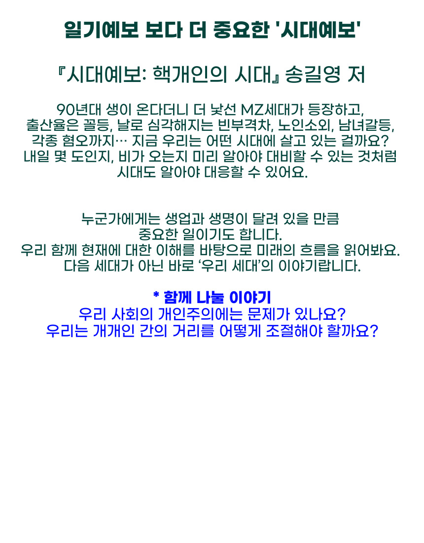 * 읽고 올 책 : 『시대예보: 핵개인의 시대』
