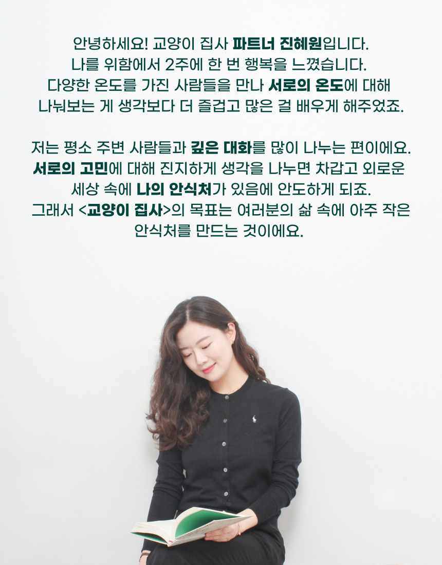 이제 교양이집사와 함께 '나'를 알아가세요.