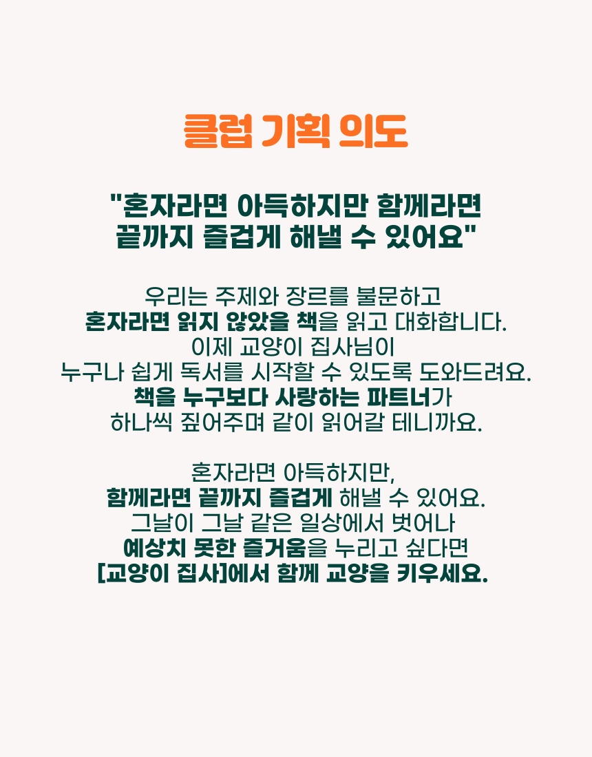 [독서] 일요일 낮, 교양이집사 (7/7 첫 모임)작성자 : 박민진 작성일 : 24-06-03
