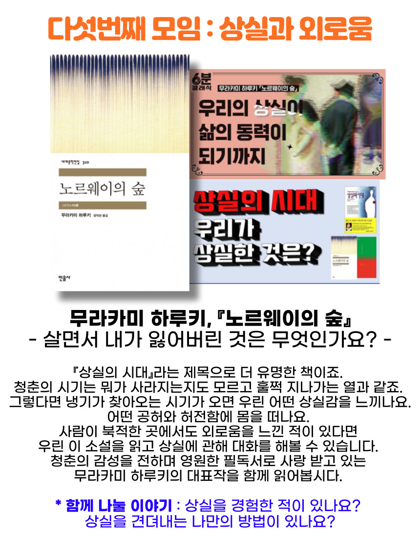 * 읽고 올 책 : 무라카미 하루키, 『노르웨이의 숲』