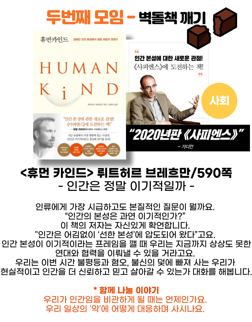 * 읽고 올 책 : 벽돌책 깨기 (사회) 『휴먼 카인드』 / 590쪽