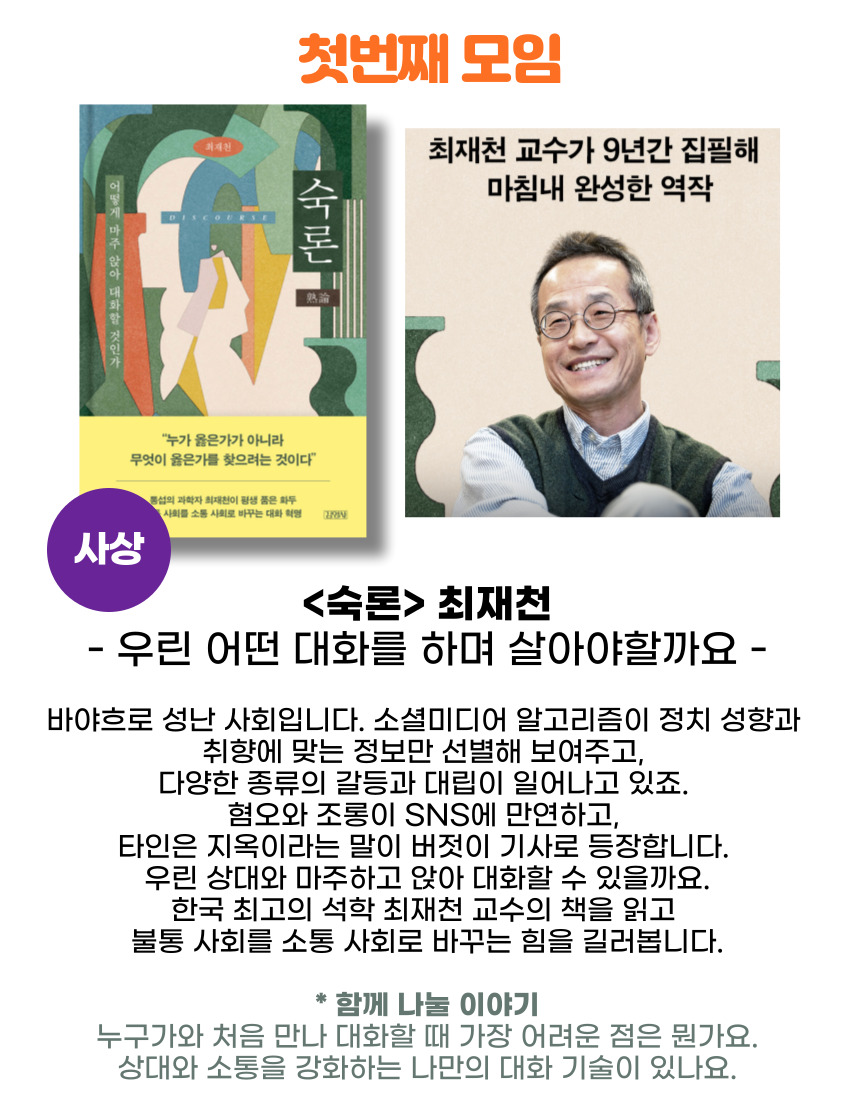 [독서] 토요일 아침, 인문학클럽(토) (7/13 첫 모임)작성자 : 박민진 작성일 : 24-06-03
