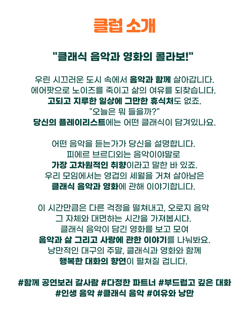 [영화/음악] 금요일 밤, 너의 영화 나의 클래식 (7/26 첫 모임)작성자 : 박민진 작성일 : 24-06-03
