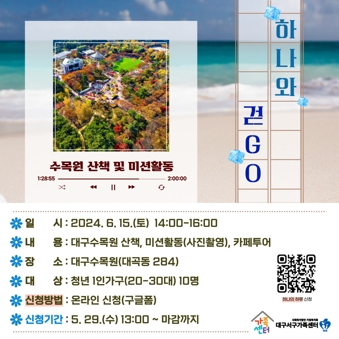 청년 1인가구 '하나의 하루' 추가모집 안내작성자 : 장준익 작성일 : 24-06-07