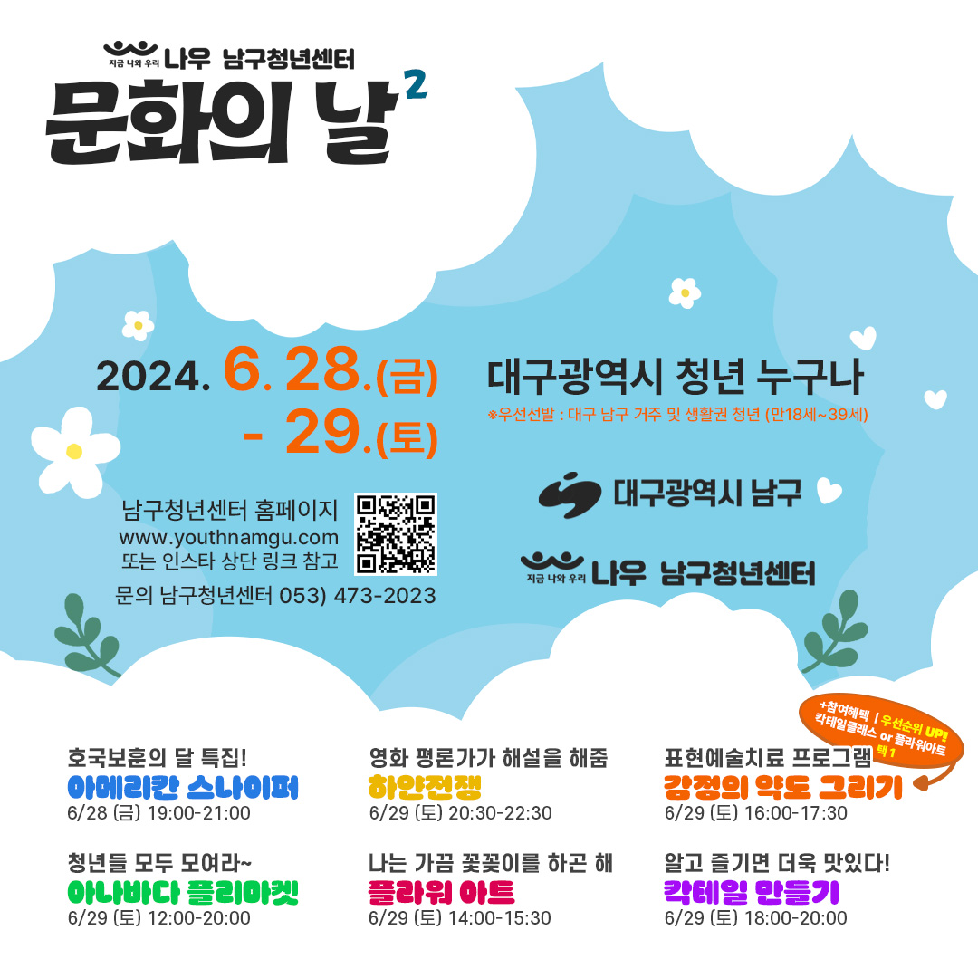 「남구청년센터 문화의 날」을 개최 합니다🎉