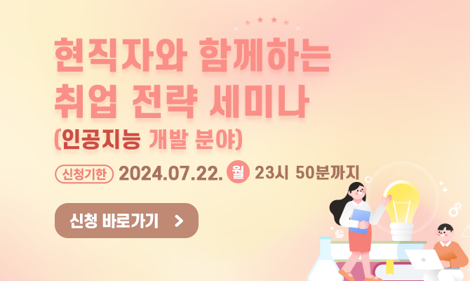 [WISET] 2024년 현직자(인공지능 산업 분야)와 함께하는 취업 전략 세미나(~7/22)작성자 : 이한빛 작성일 : 24-06-19