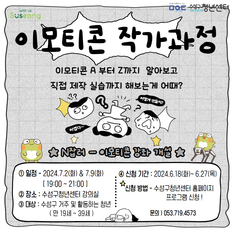 청년특화교육[N잡러] - 이모티콘 강좌 개설작성자 : 수성구청년센터 작성일 : 24-06-19