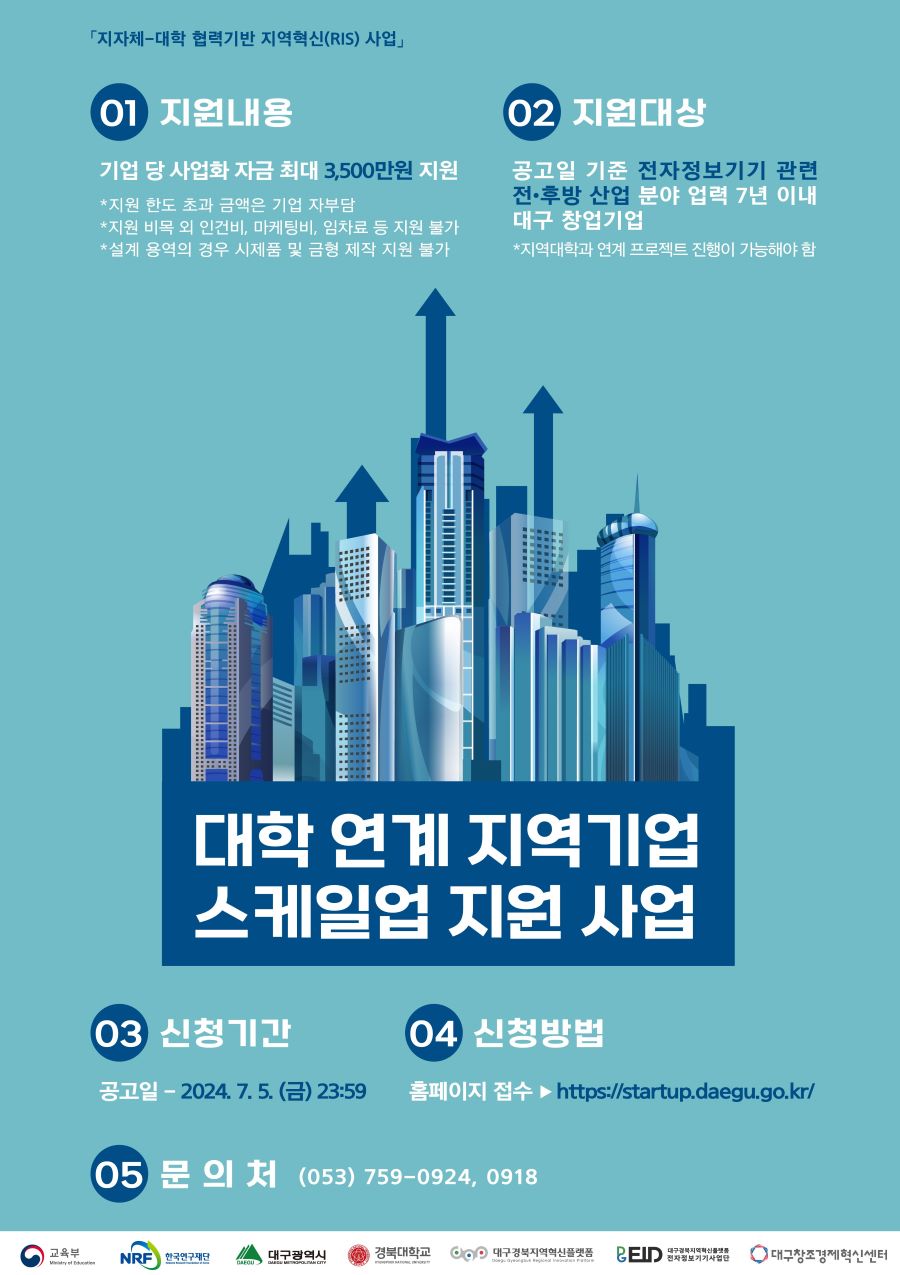 대학 연계 지역기업 스케일업 지원 사업 참가 기업 모집 (~7/5)작성자 : 이지현 작성일 : 24-07-04