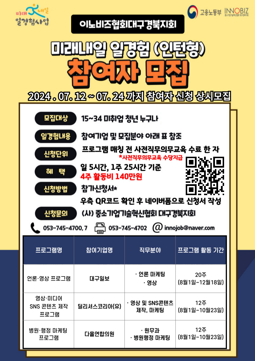 『'24년 미래내일일경험 인턴형』 4기 참여자 모집작성자 : 박경랑 작성일 : 24-07-12