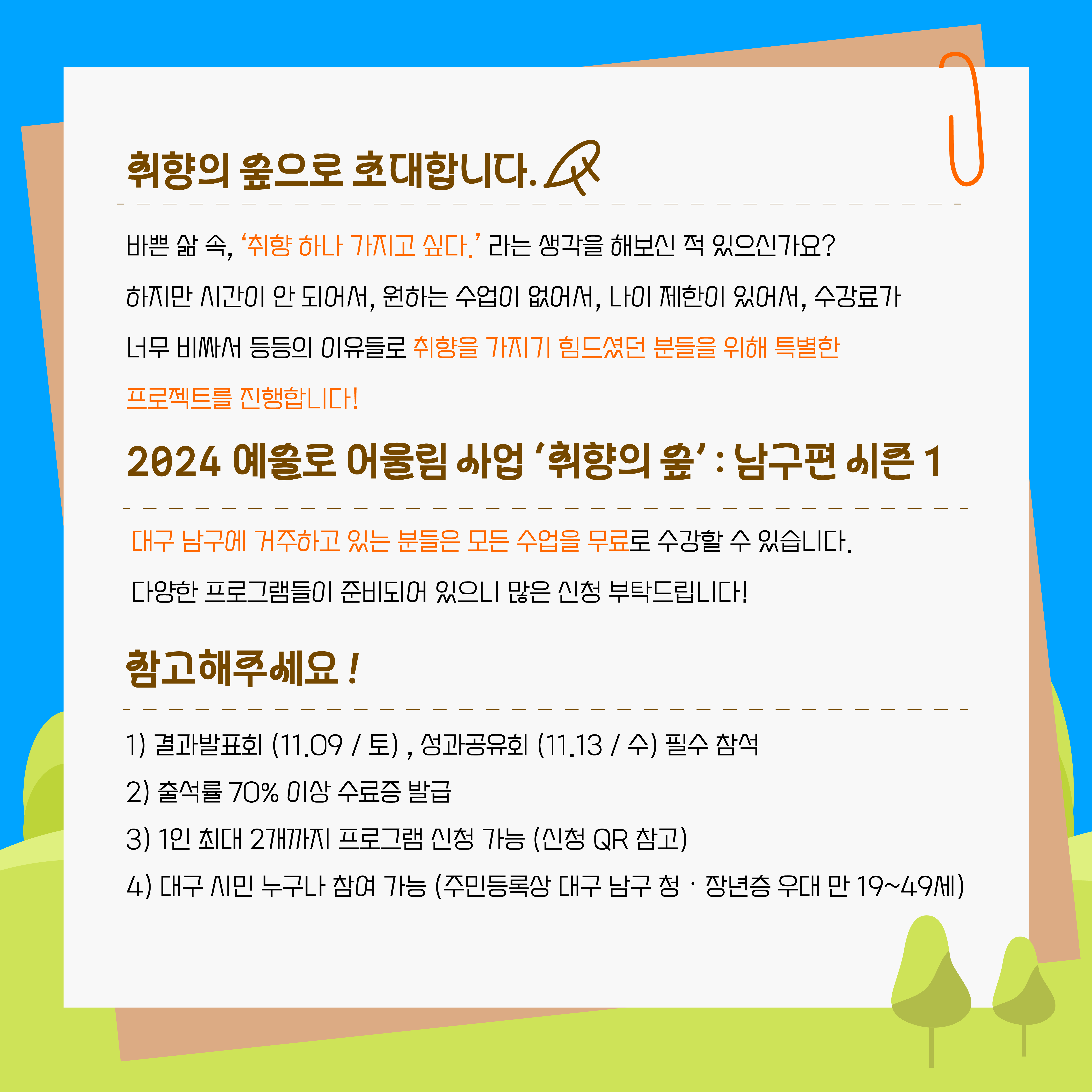 《 2024 예술로 어울림 사업 취향의숲⎟남구편 시즌 1 》