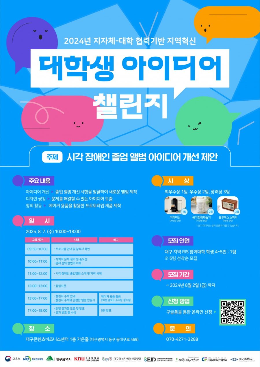 대학생 아이디어 챌린지 참가 학생 모집 (~8/2)작성자 : 이지현 작성일 : 24-07-26