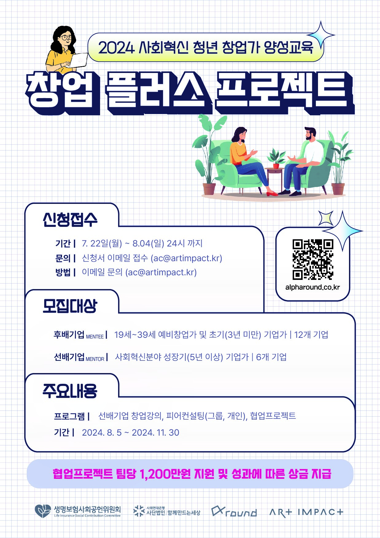 : 협업프로젝트 팀당 1,200만원 지원 및 성과에 따른 상금 지급