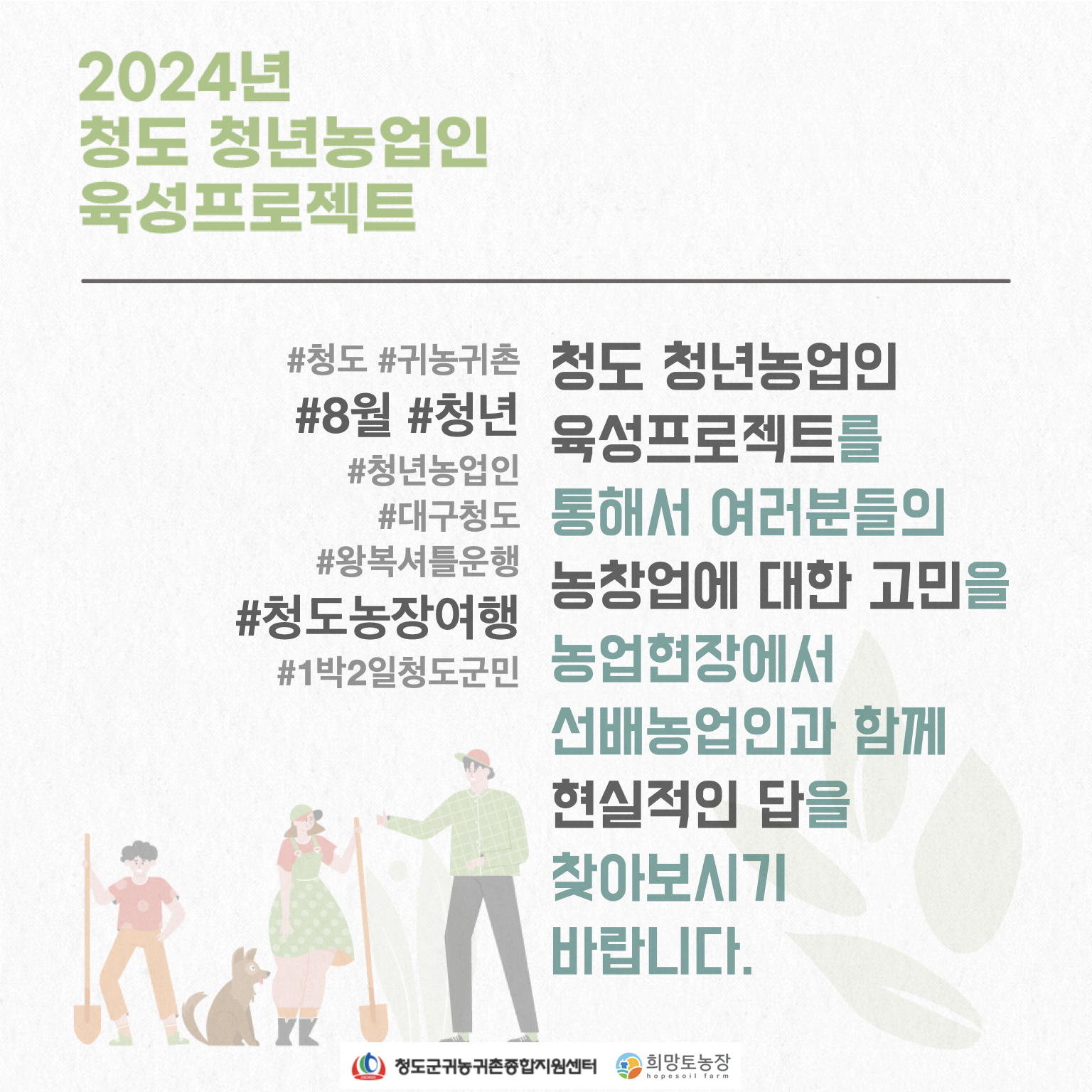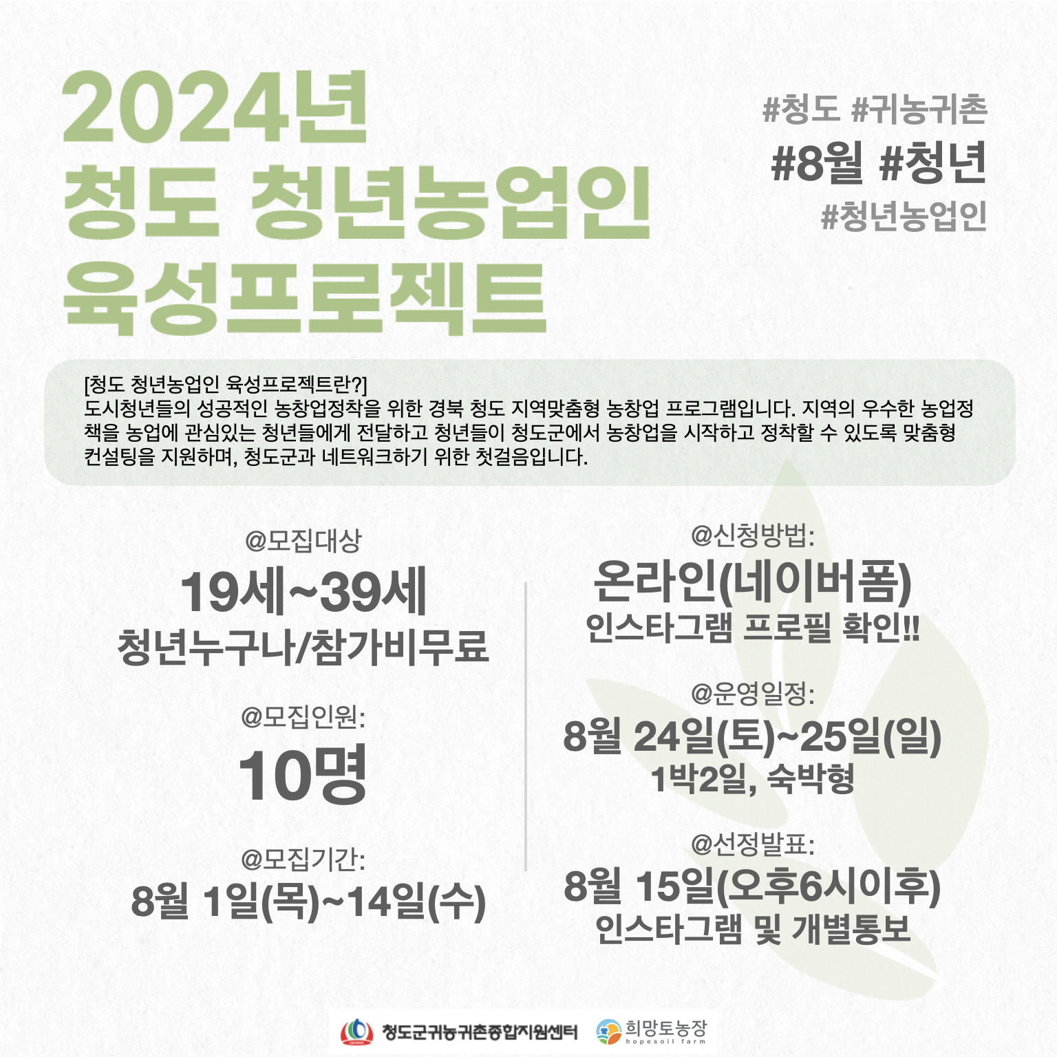 2024년 청도 청년농업인 육성프로젝트 8월 참가자를 모집합니다.