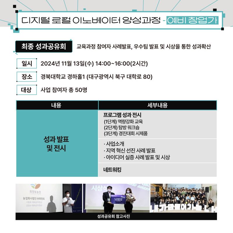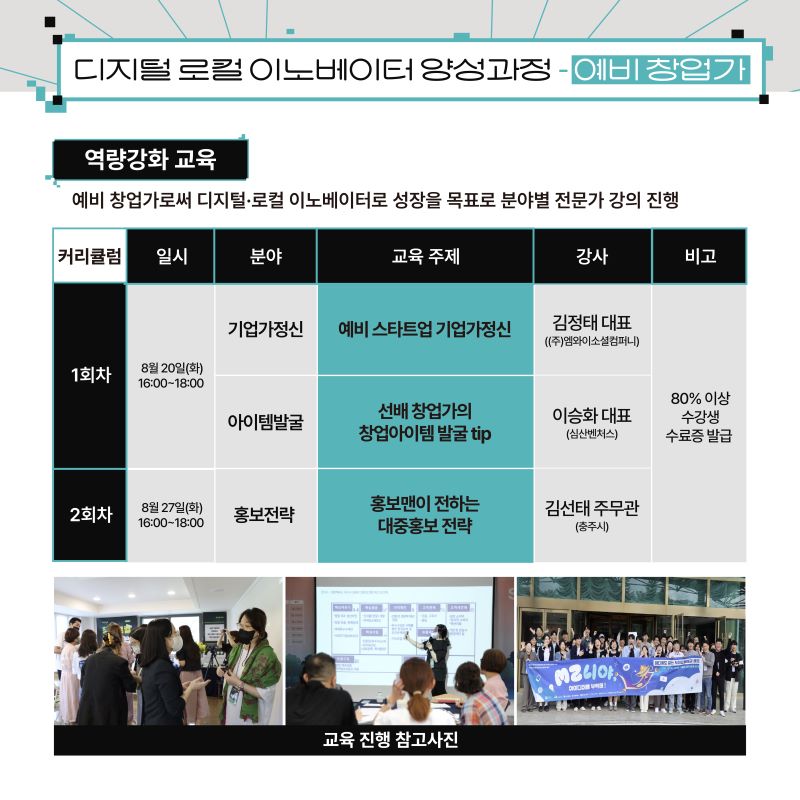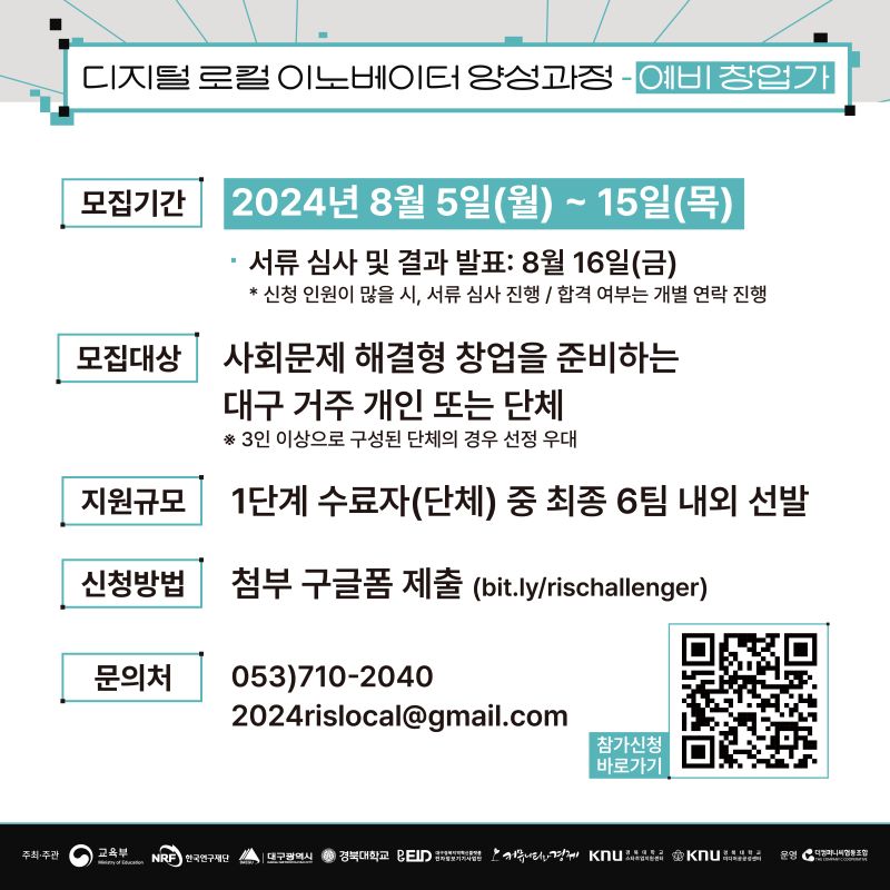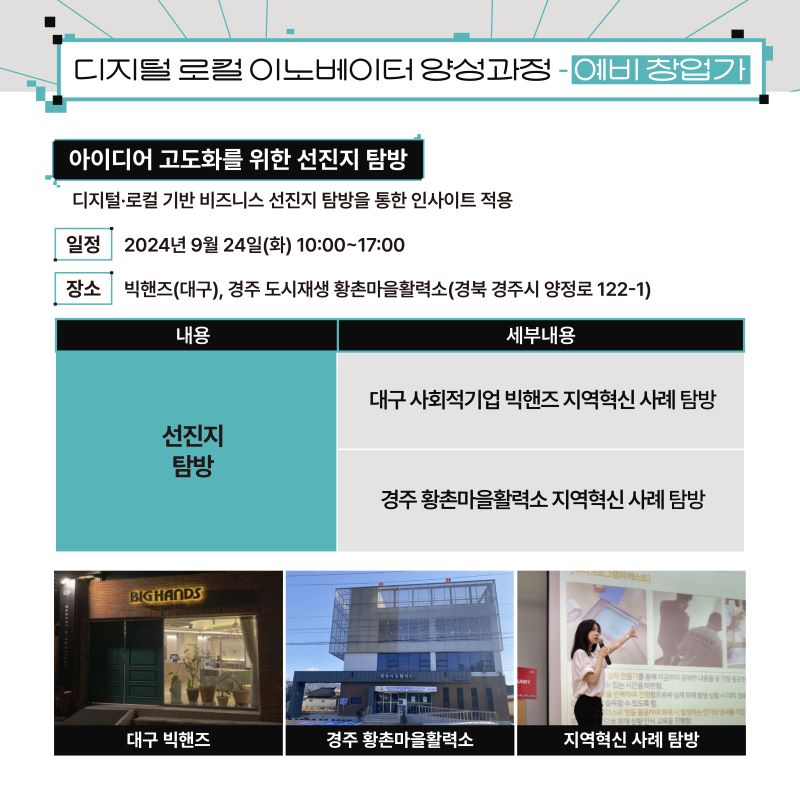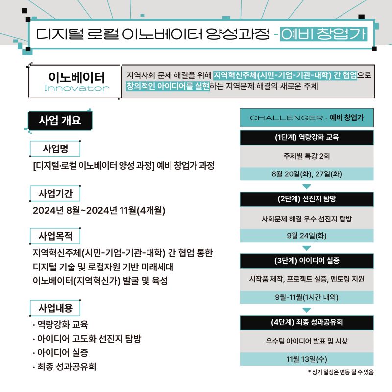 디지털 로컬 이노베이터 양성 과정(예비 창업가) 참가자 모집 (~8/15)작성자 : 이지현 작성일 : 24-08-06