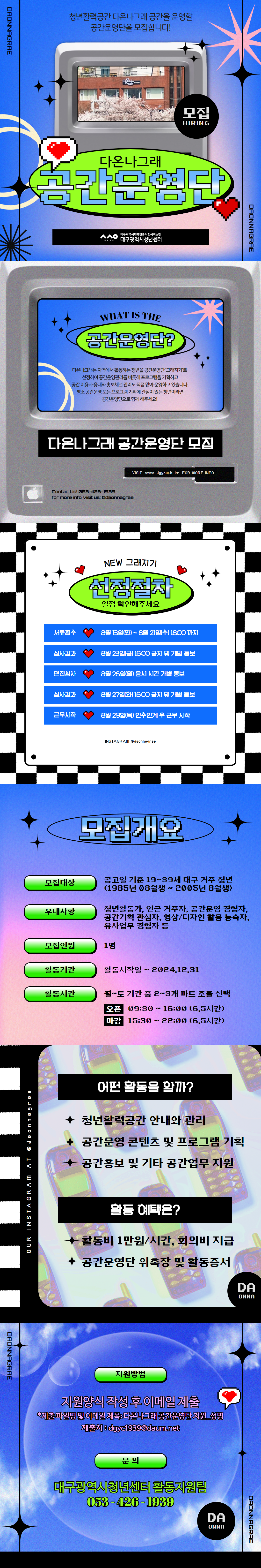 2024 청년활력공간 다온나그래 공간운영단 모집작성자 : 대구청년센터 작성일 : 24-08-13 대구광역시청년센터