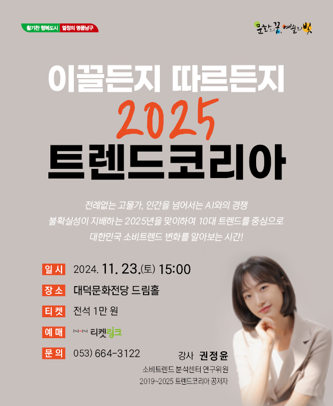 이끌든지 따르든지 2025 트렌드코리아작성자 : 최정임 작성일 : 24-08-19
